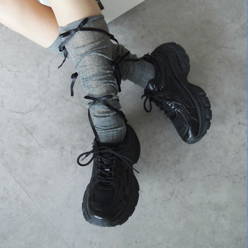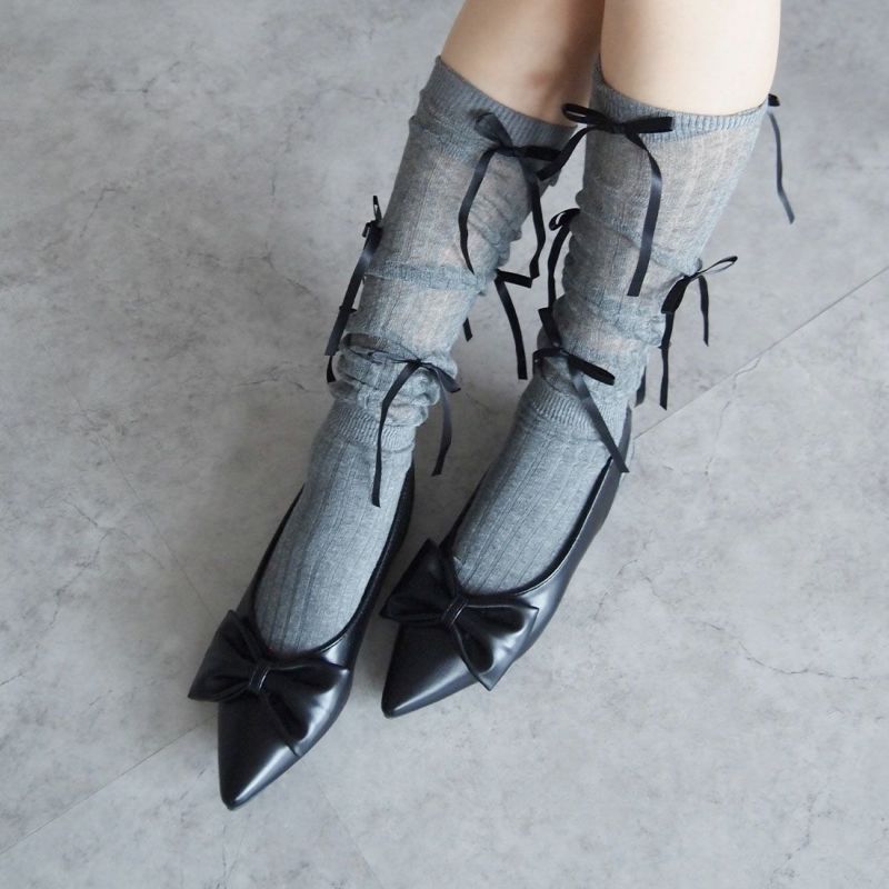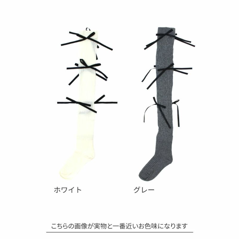 ・韓国トレンドの長めなサテンリボンがポイントのニーハイソックス!