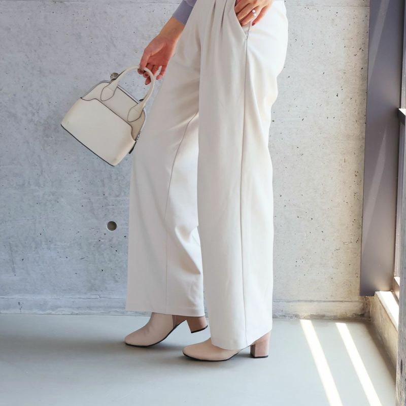 ・丸みのあるスクエアトゥ×ブロックヒールで甘くなりすぎないスッキリとしたシルエット