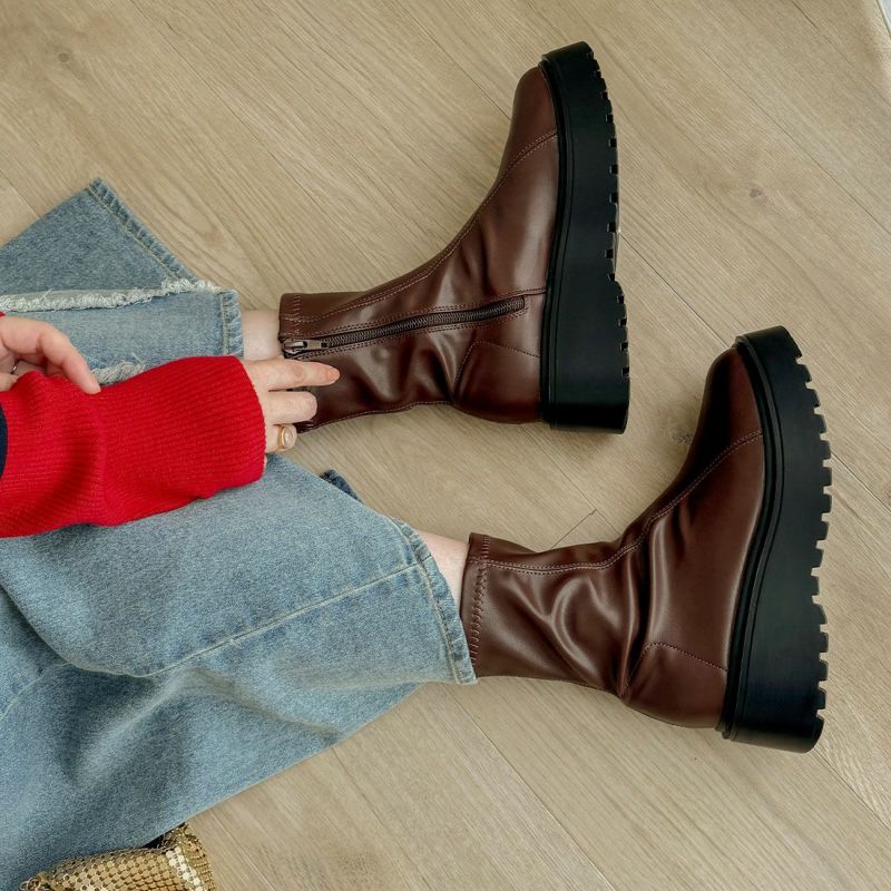 ・縦のラインが際立つダブルステッチがアクセントの今っぽ厚底ブーツ!