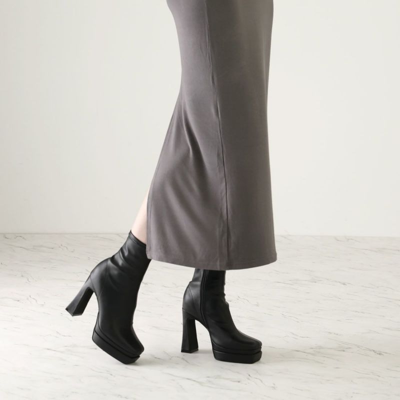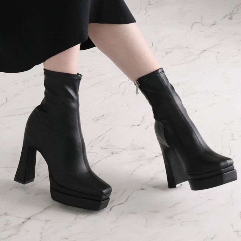 ・厚底プラットフォームデザインで足元も盛れるショートブーツ!