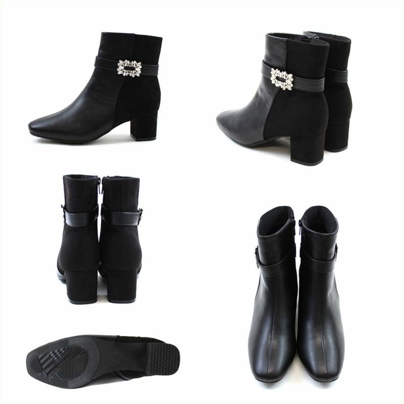・キラキラのビジューバックルと異素材コンビで大人っぽさ漂うショートブーツに