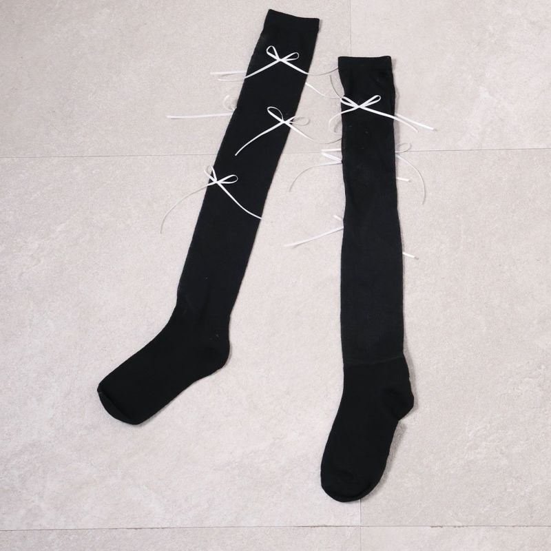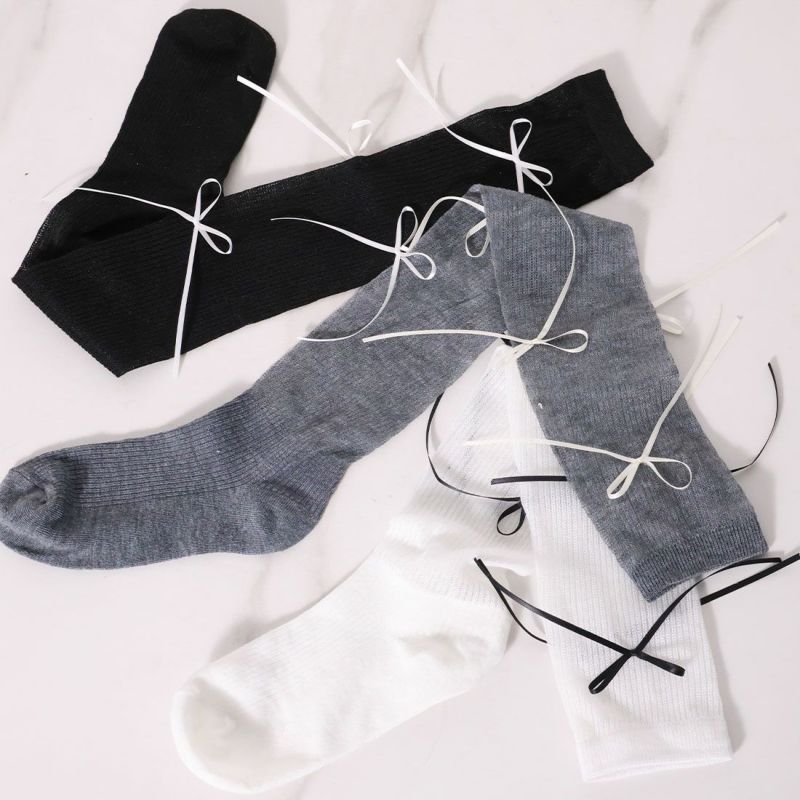 ・韓国トレンドの長めなサテンリボンがポイントのハイソックス!