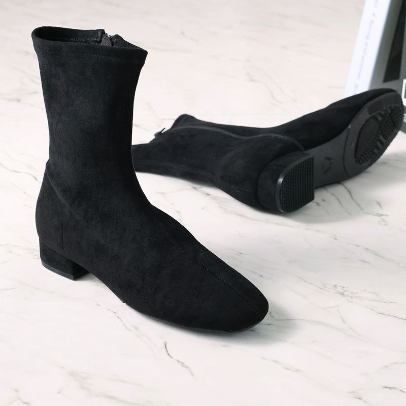 ・裏地が付いていないストレッチ素材で、伸縮性があり柔らかく足にフィットして履きやすい。