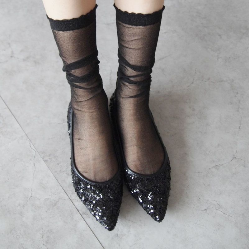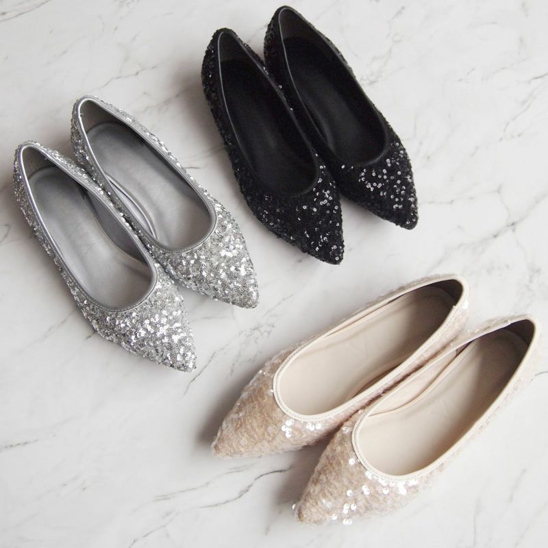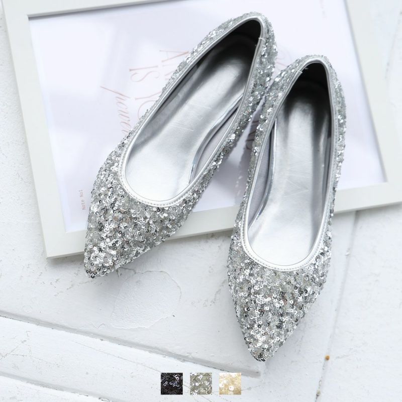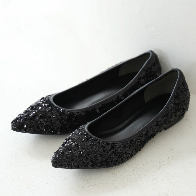 ・スパンコールの輝きをプラスした主役級キラキラフラットパンプス