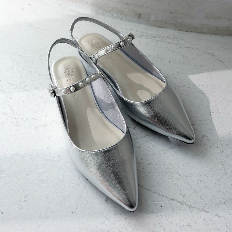 ・パールのストラップが目を引く主役級スリングバックパンプス!