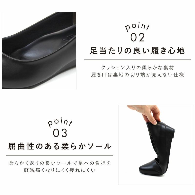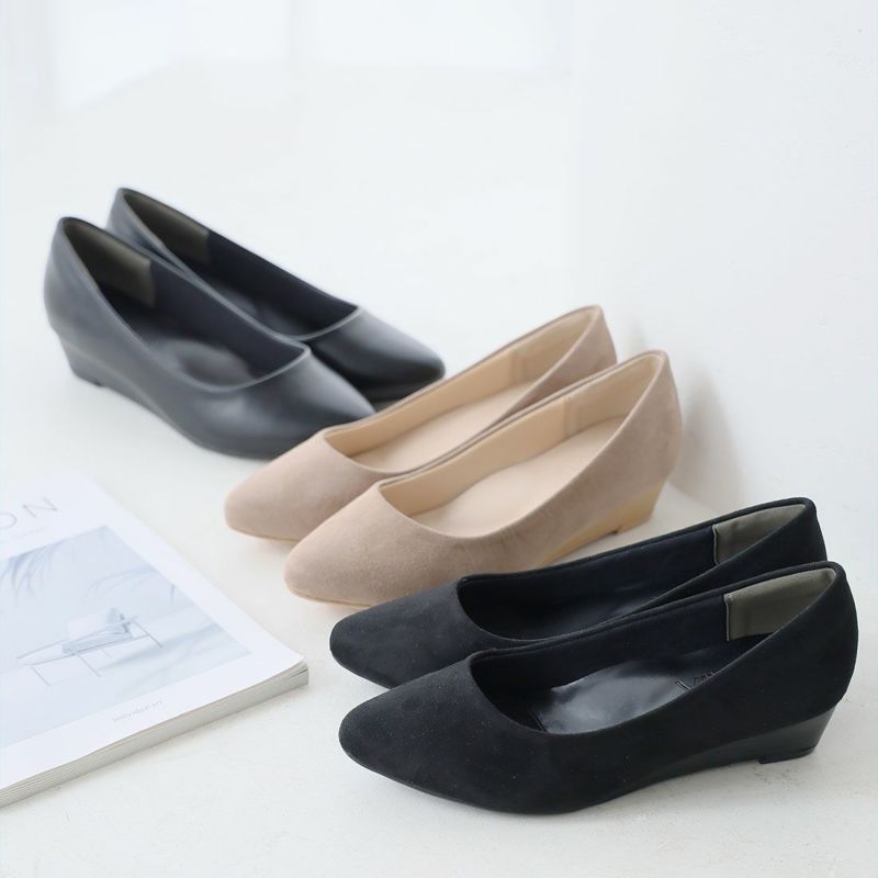 ・3.5cmローウェッジヒール×アーモンドトゥで、脚をキレイに見せてくれてスタイルアップが叶う!
