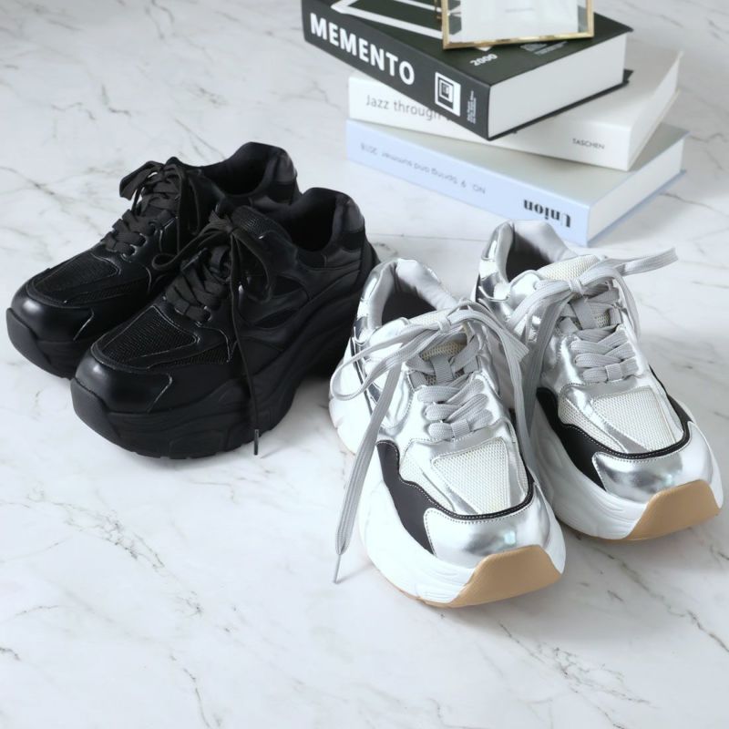 ・異素材コンビがアクセントの大人レースアップダッドスニーカー!