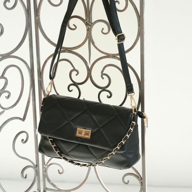 ・チェーンハンドベルトとキルティングデザインが印象的なバッグ。