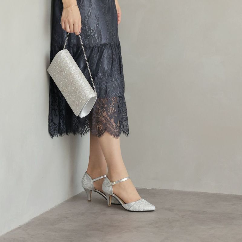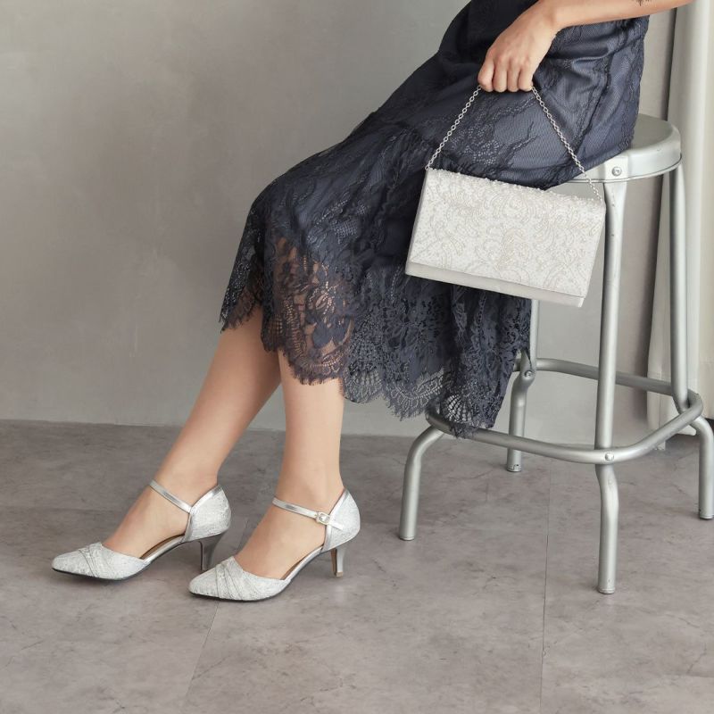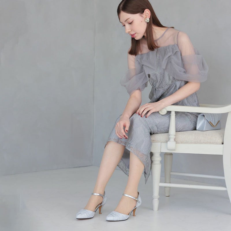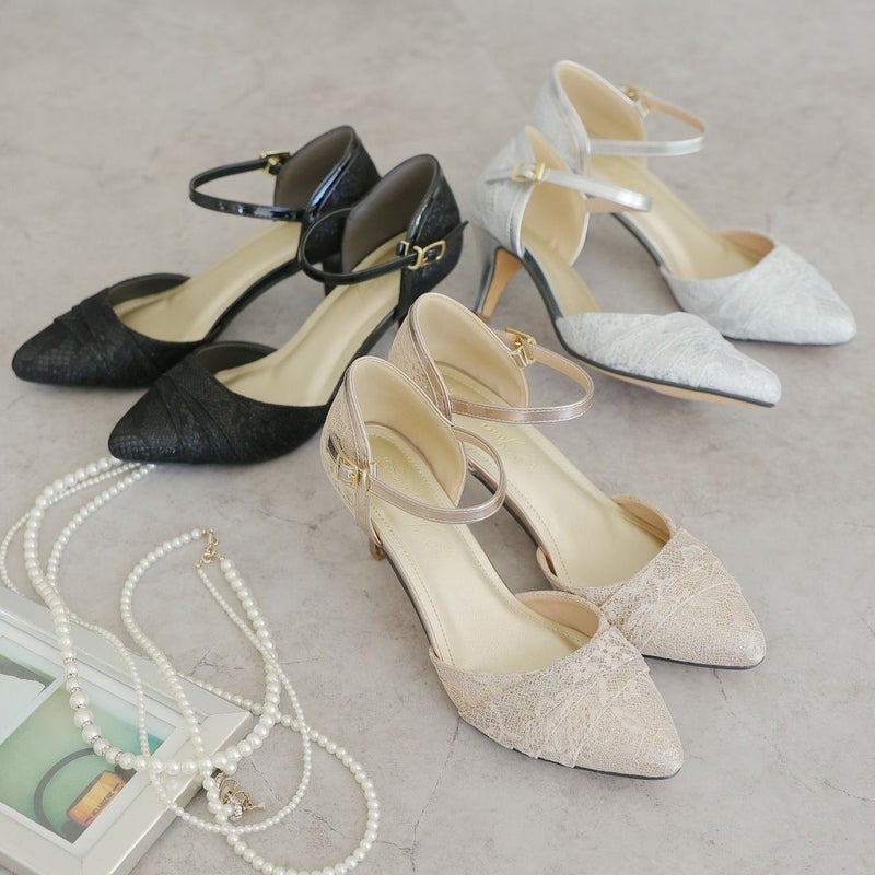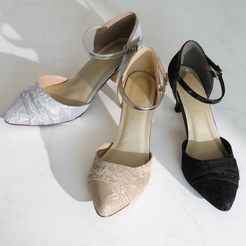 ・ラグジュアリー感漂うグリッターとプリーツレースでエレガントな万能セパレートパンプス!