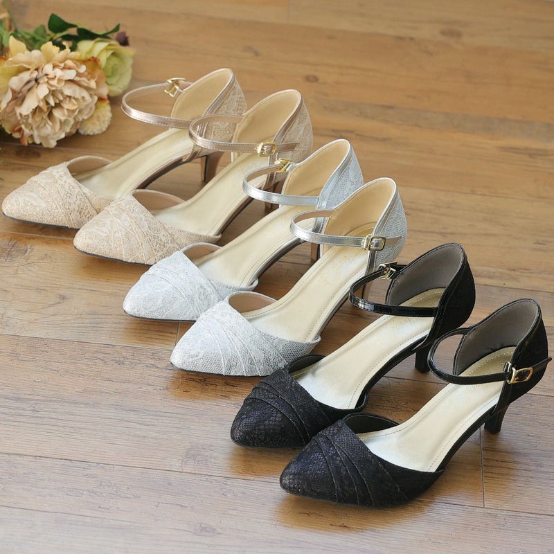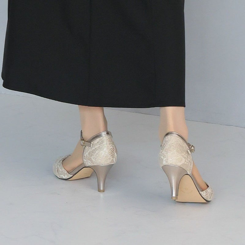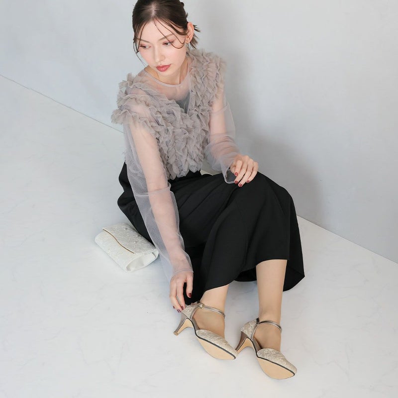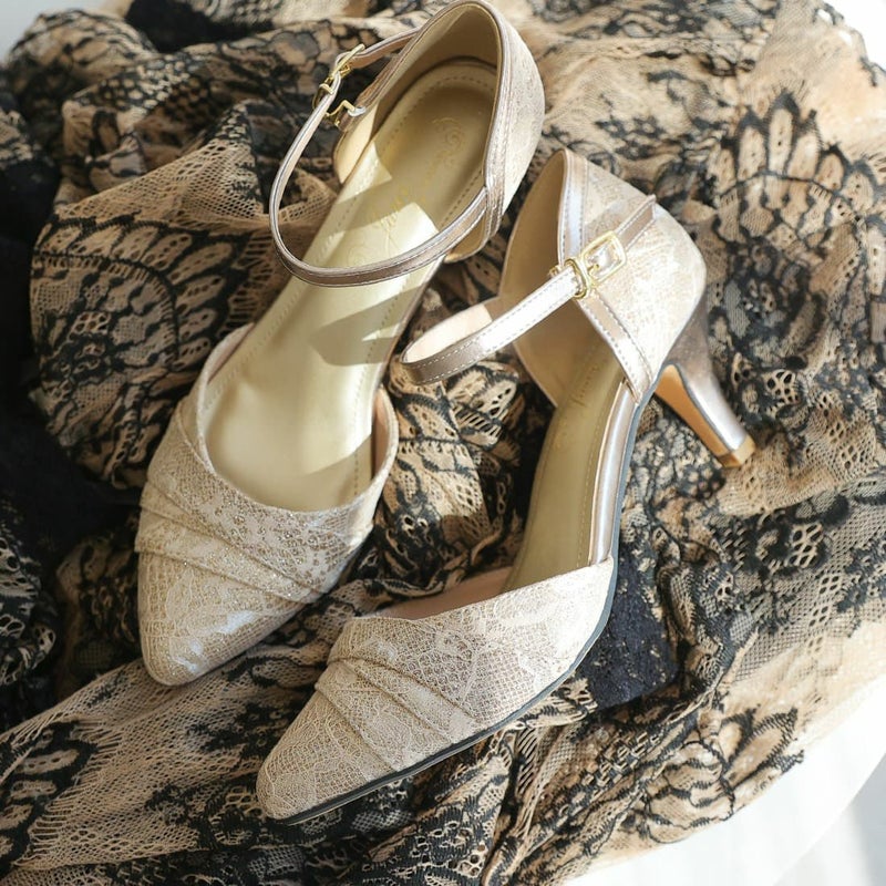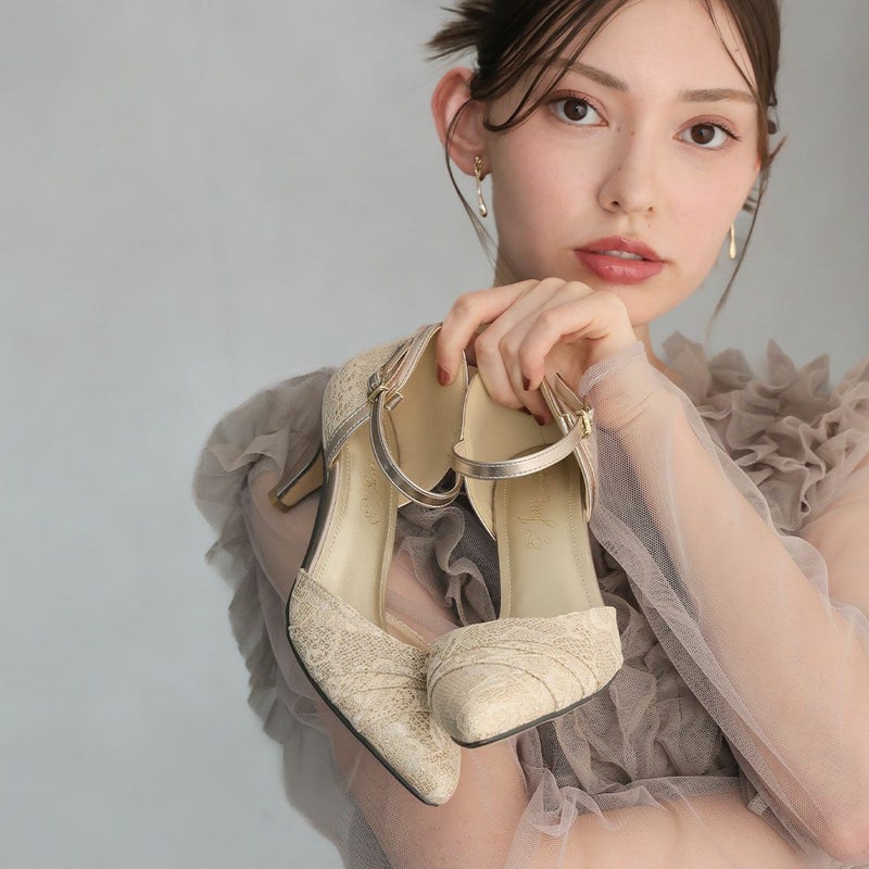 ・ラグジュアリー感漂うグリッターとプリーツレースでエレガントな万能セパレートパンプス!