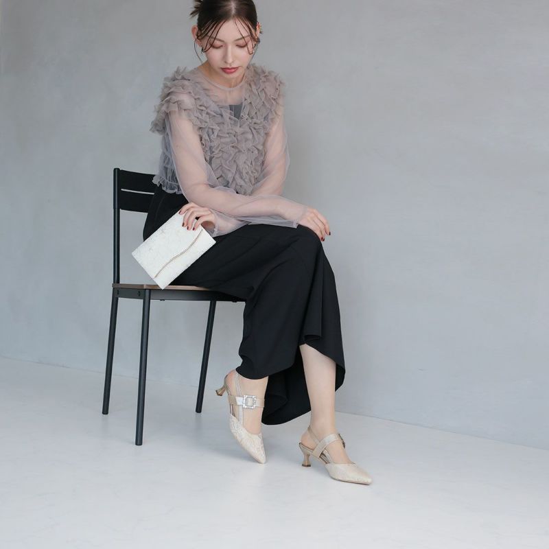・サイドが見えるデザインは、履くだけでレディでフェミニンなエッセンスをプラス。