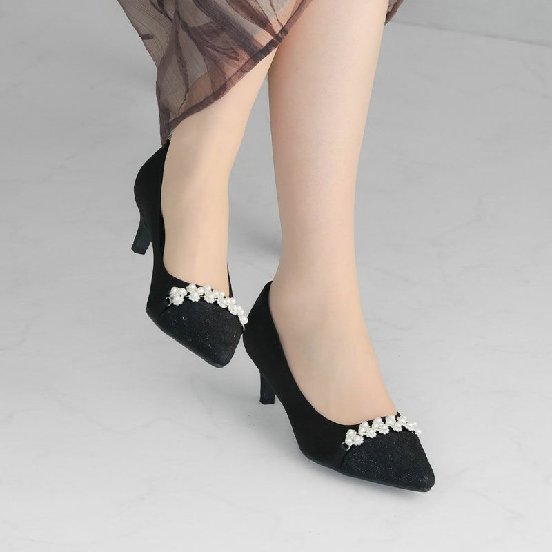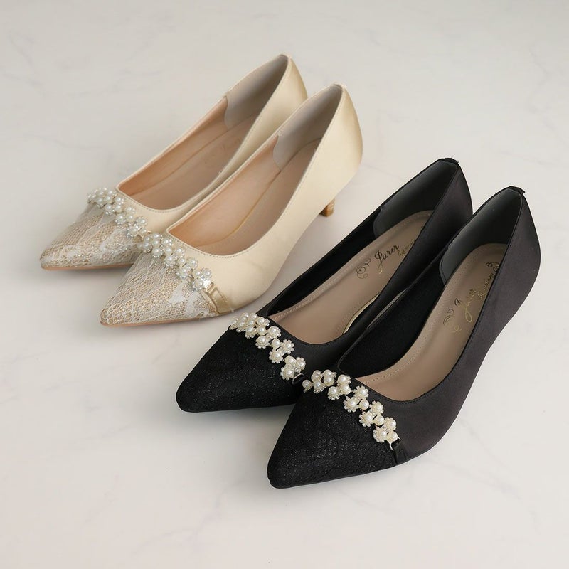 ・ラグジュアリー感漂うグリッターレースとパール&ビジューでエレガントな足元を演出!