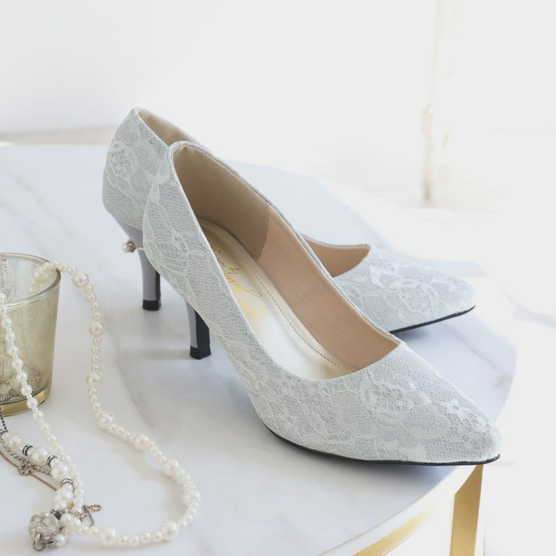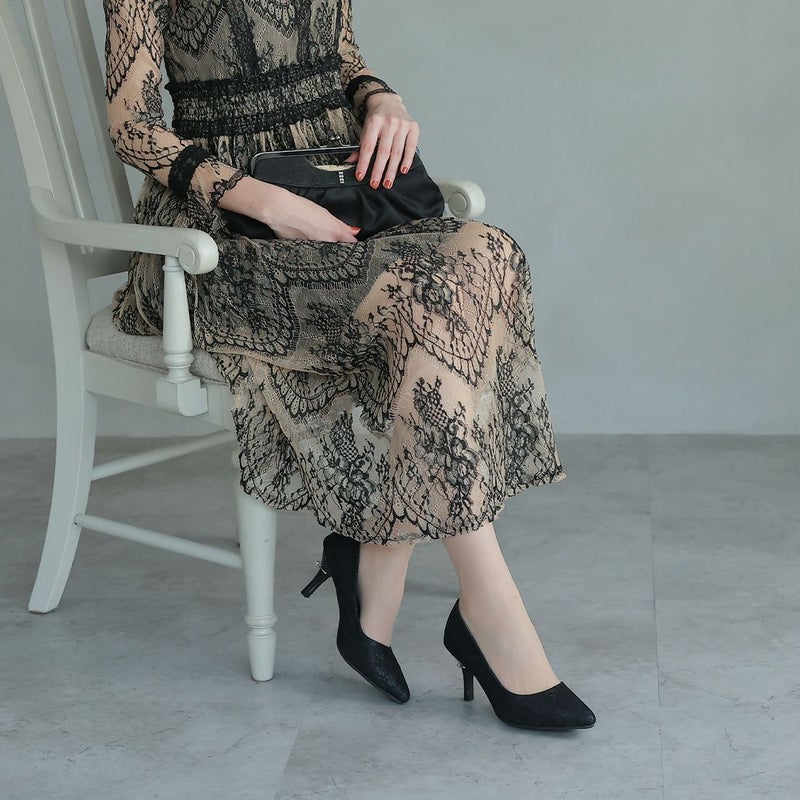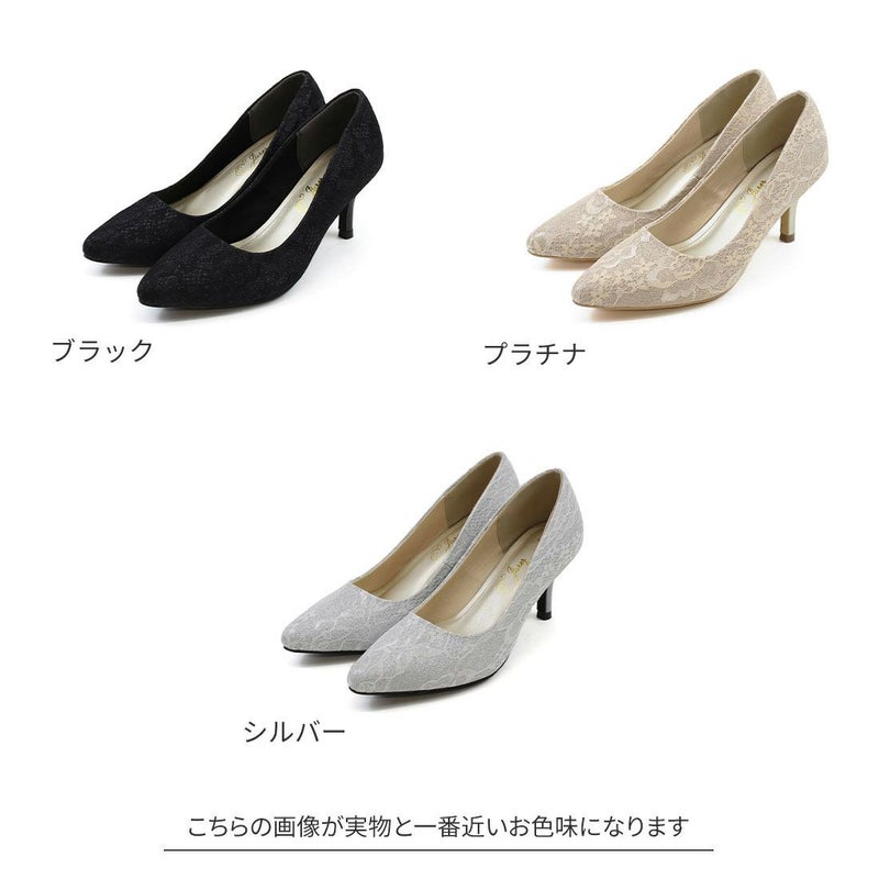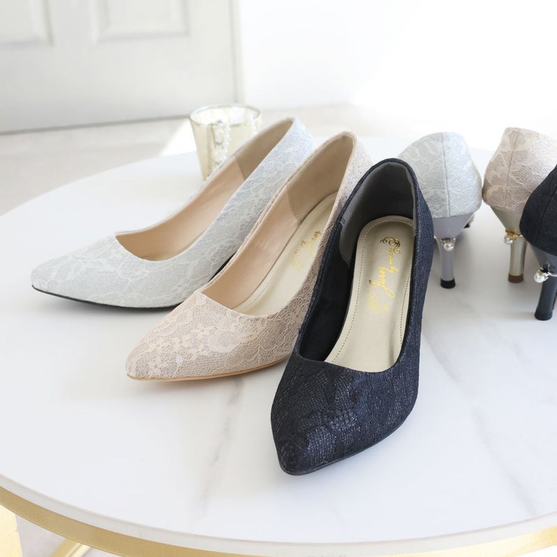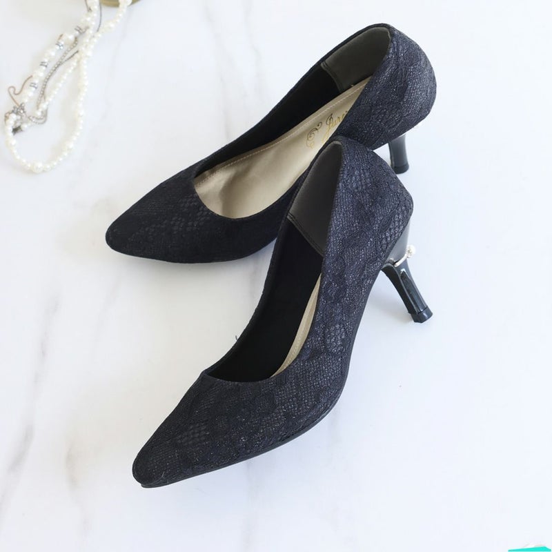 jurer パールリング付きヒールレースグリッターパンプス