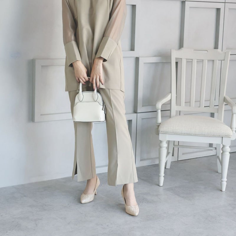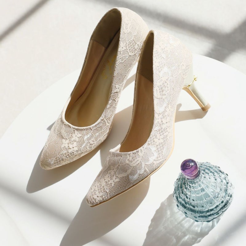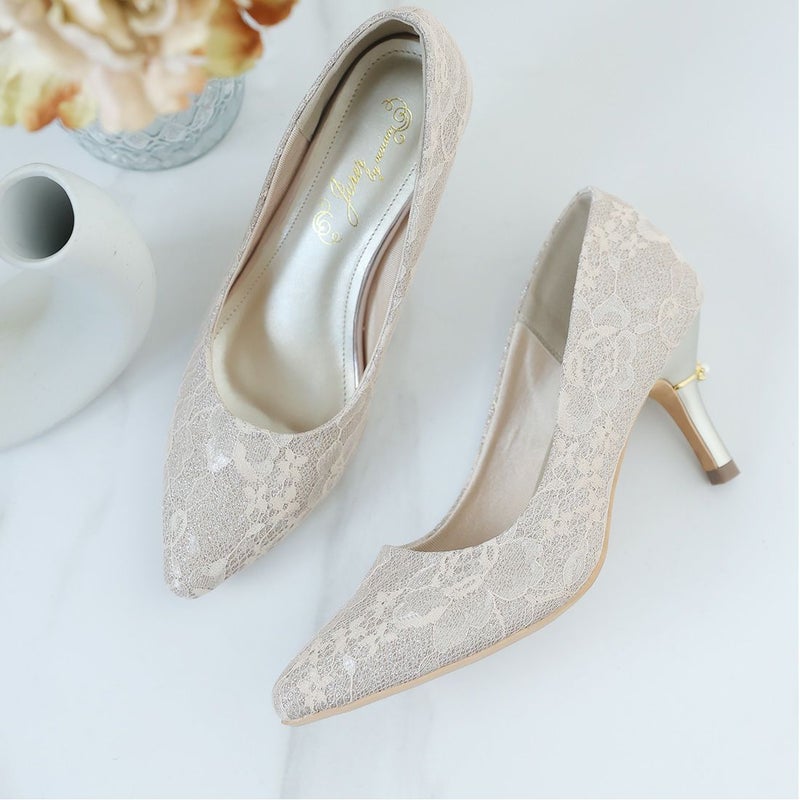 ・ラグジュアリー感漂うレースやグリッター素材&パールリング付きヒールで後ろ姿まで隙のない素敵コーデに。