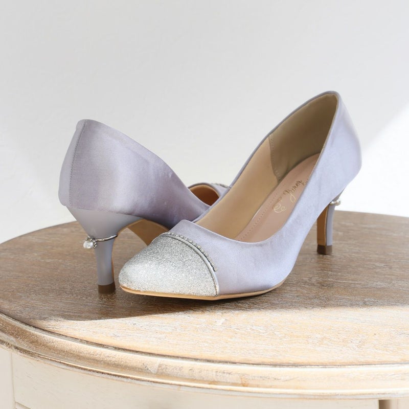 ・光沢のあるサテンとさりげないビジューレーンがエレガントな雰囲気をプラス