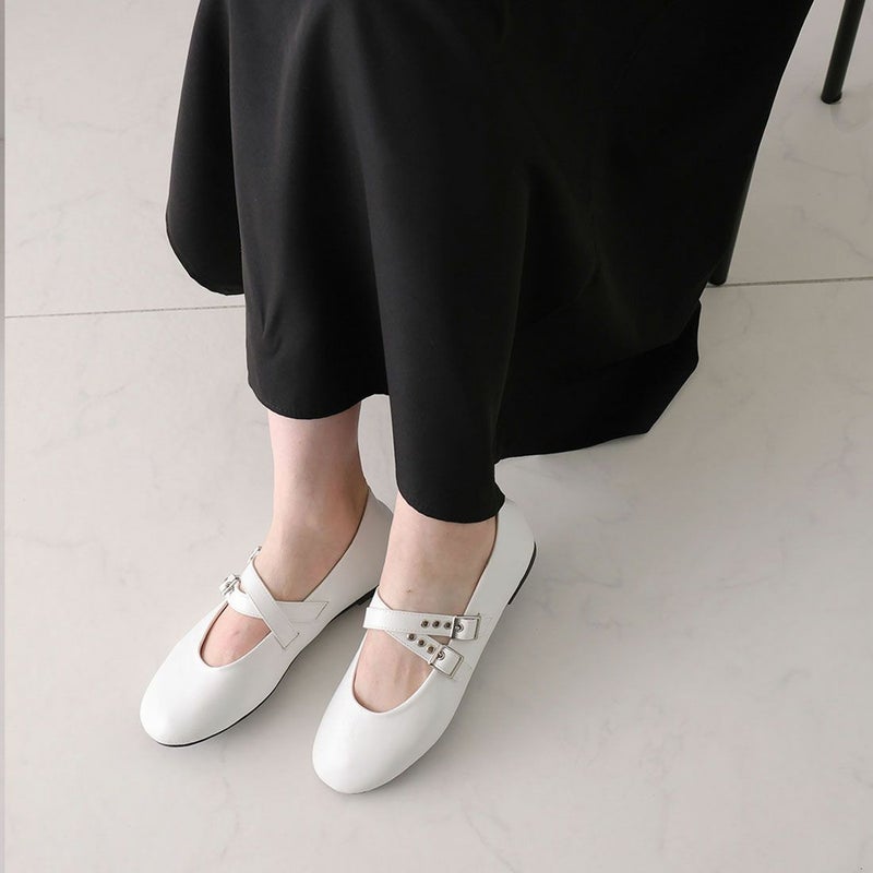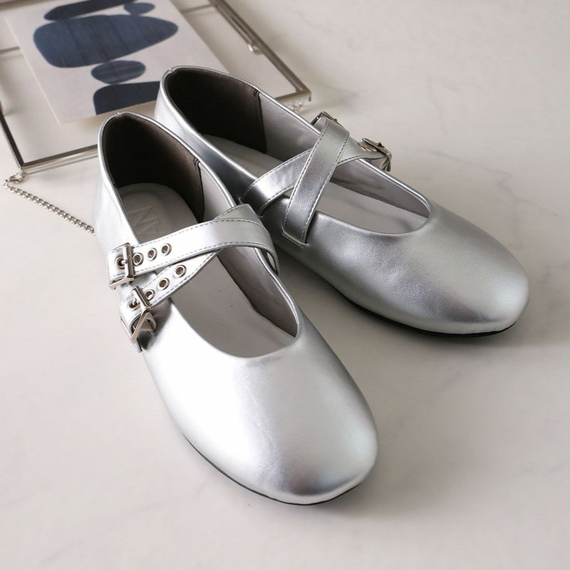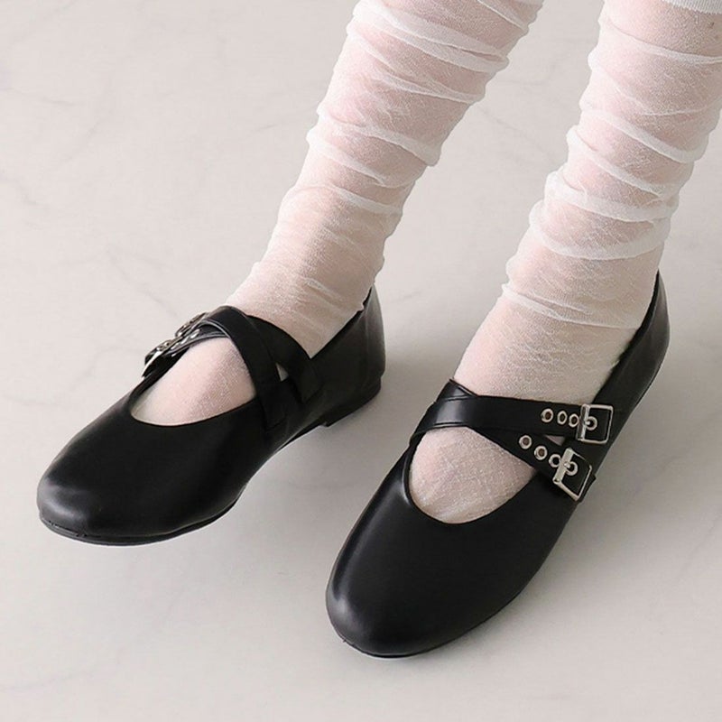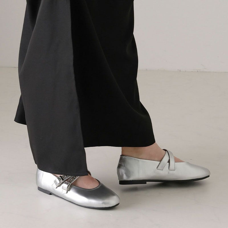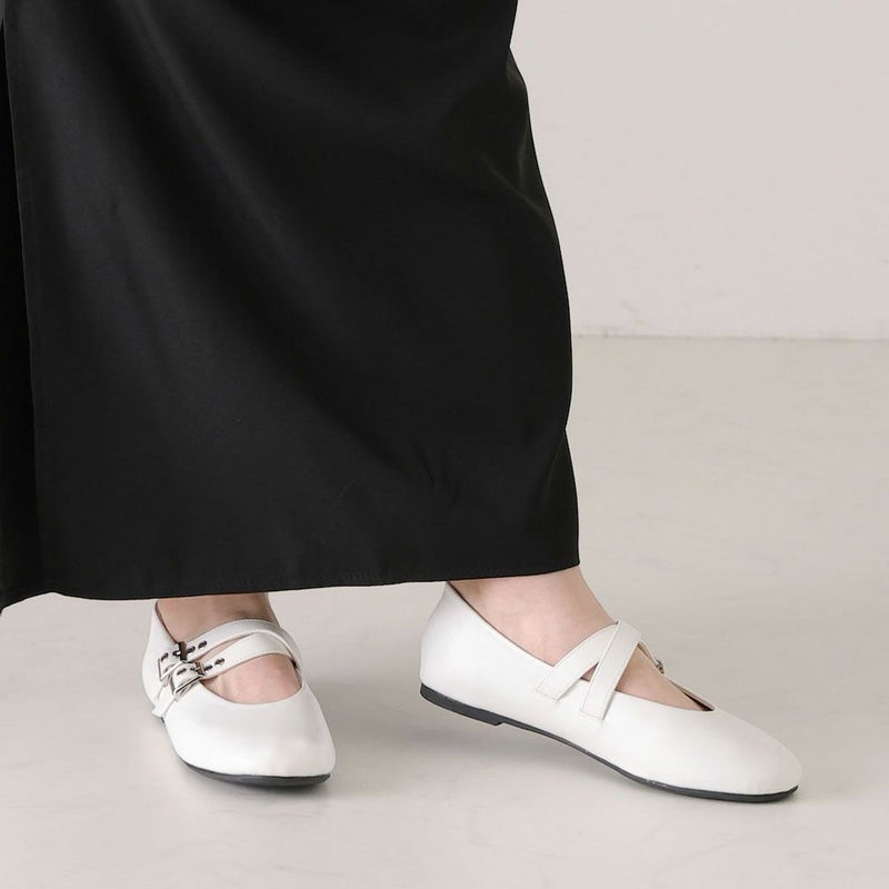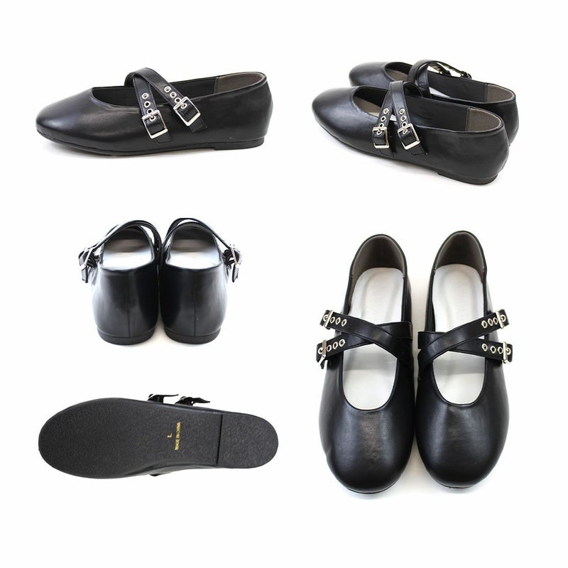 ・クロスのダブルベルトがアクセントのフラットシューズ!