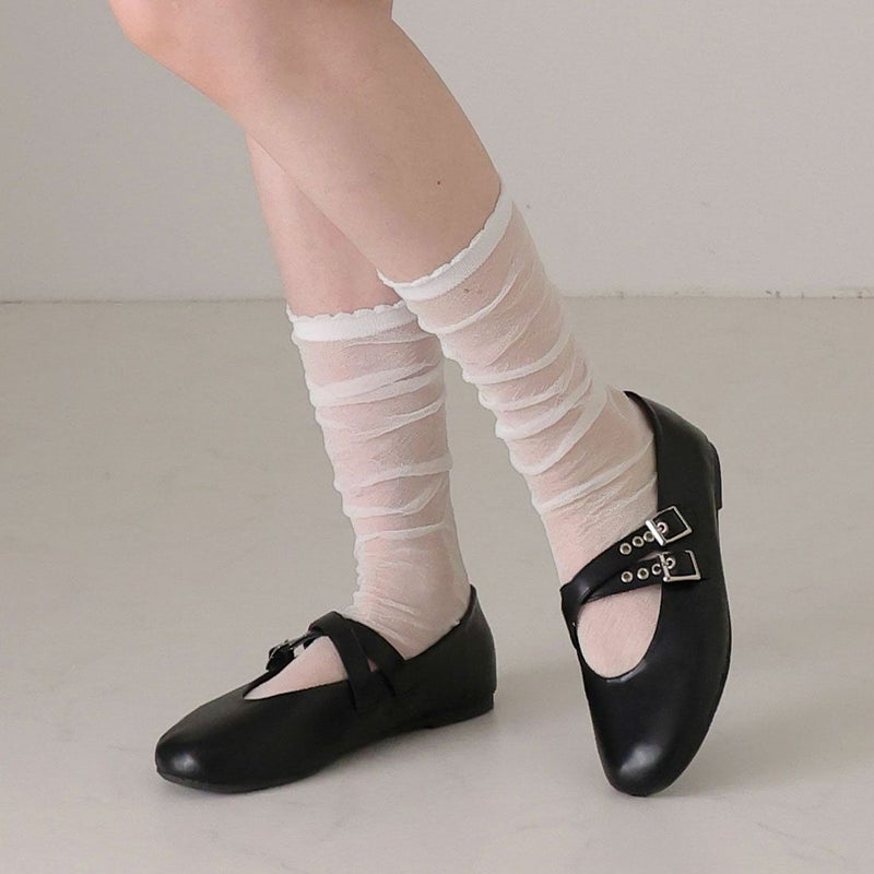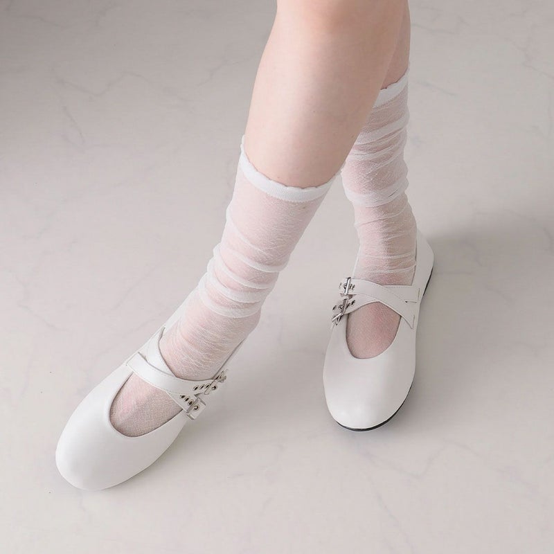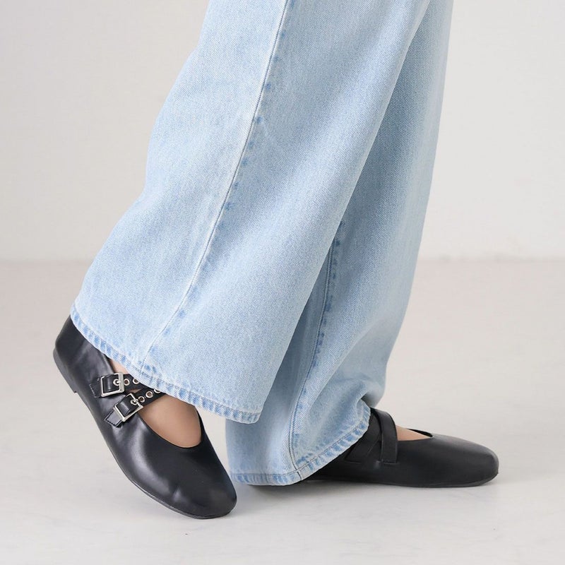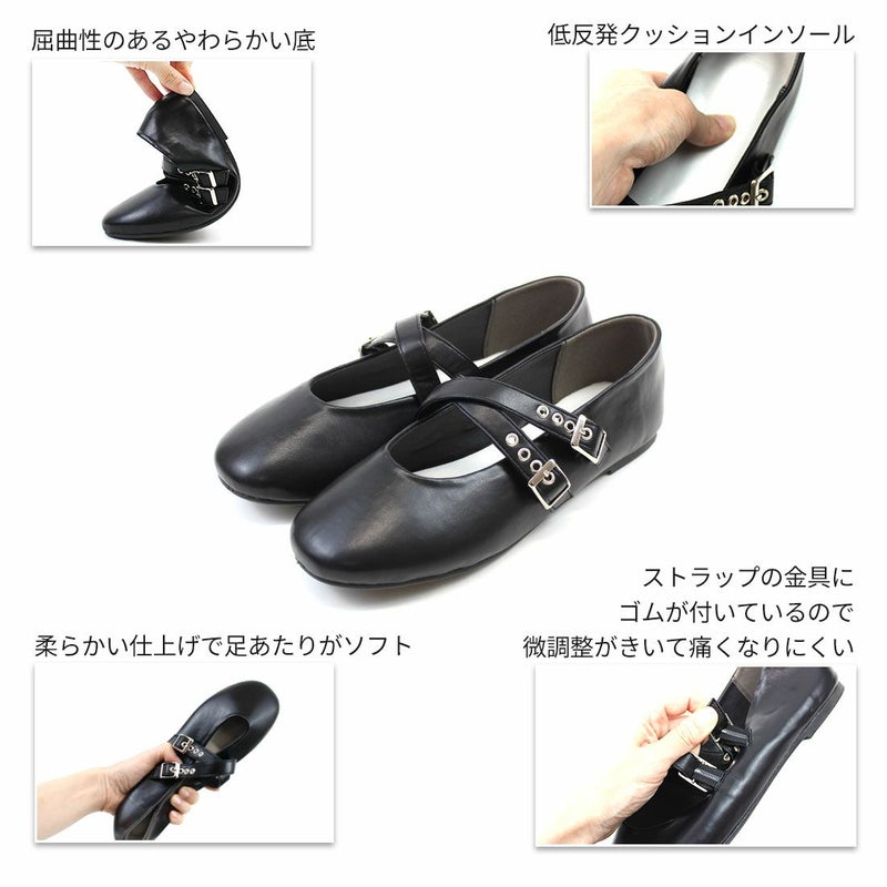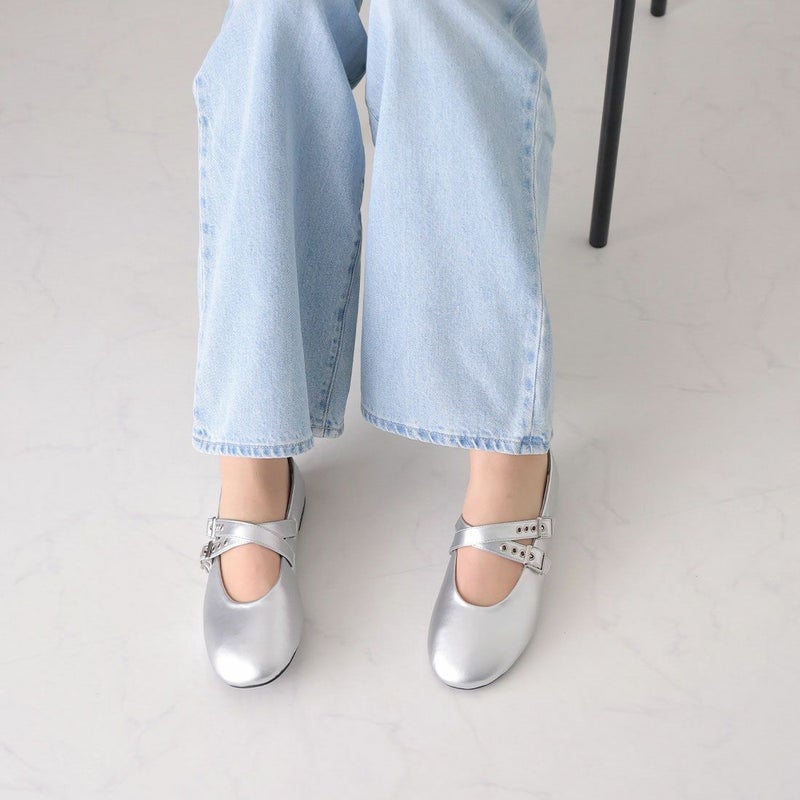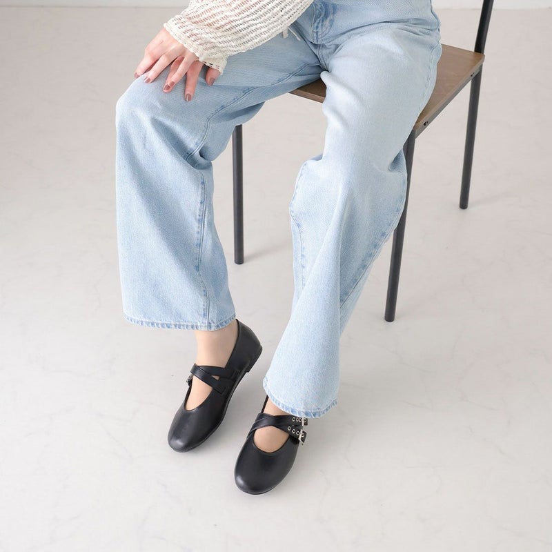・クロスのダブルベルトがアクセントのフラットシューズ!