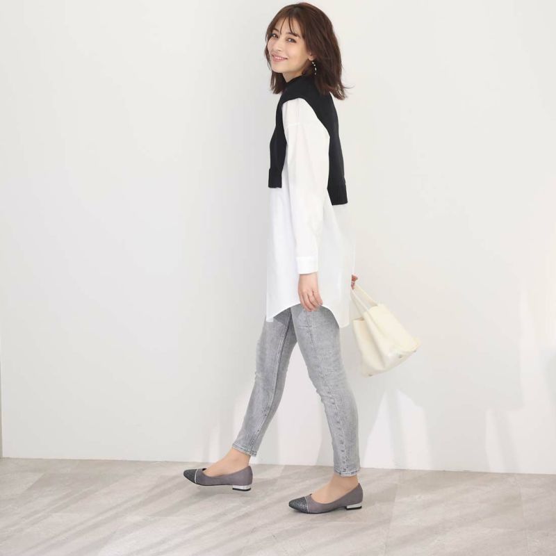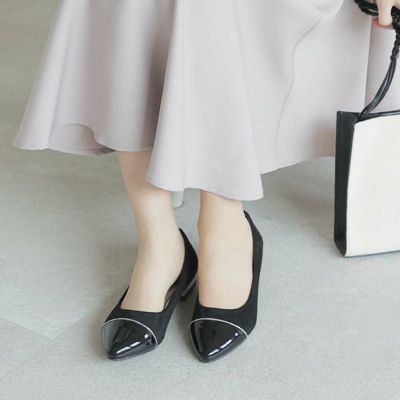 ・キチンと感のあるアーモンドトゥ×ローヒールでデイリーからオフィスまで、オンオフどんなシーンでも大活躍しそう。