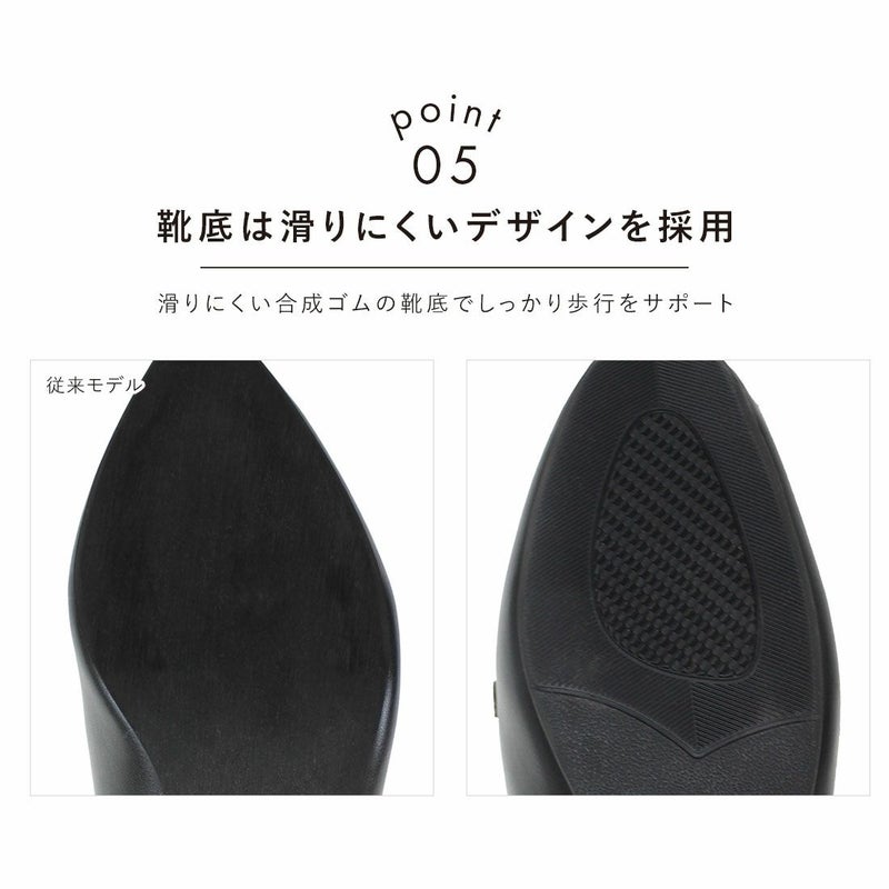 ・土踏まずの高反発アーチクッションが足にフィットして前滑りしにくく歩行をサポート