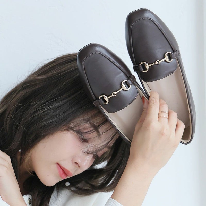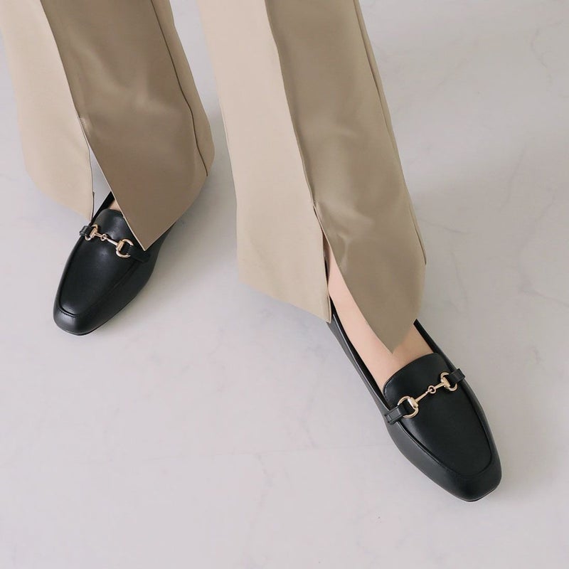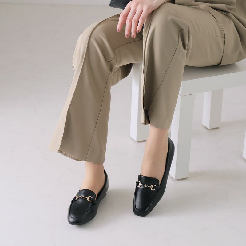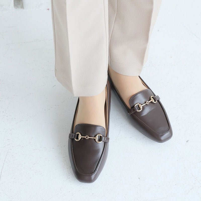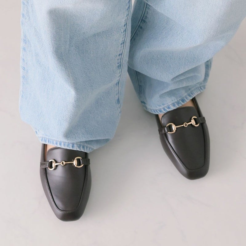 ・定番デザインのビット付きローヒールローファーで足元にキチンと感をプラス