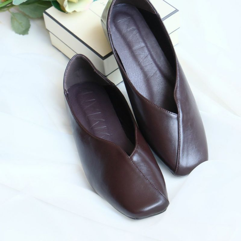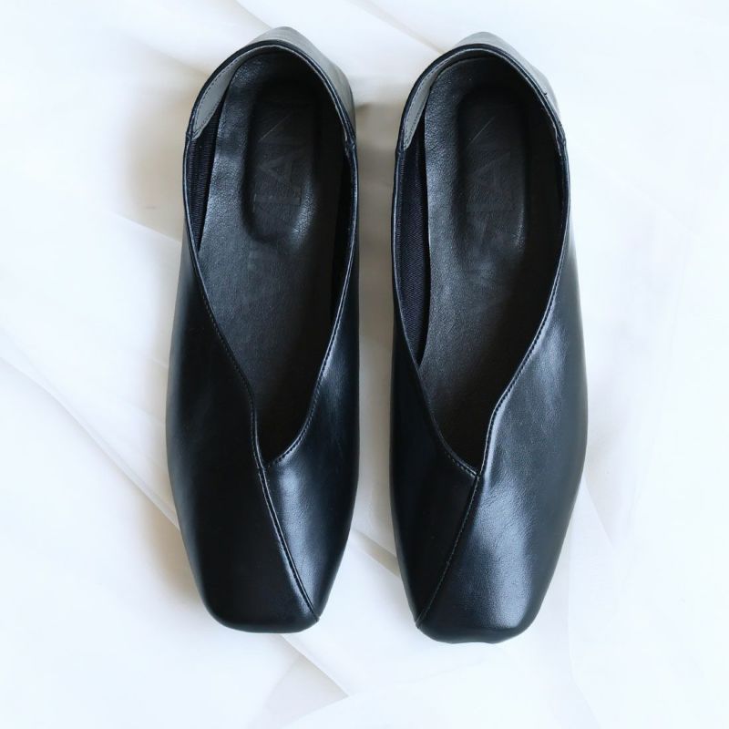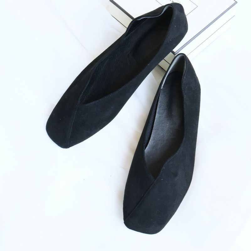 ・スクエアトゥ×Vカットで履くだけで大人なこなれ感を演出。