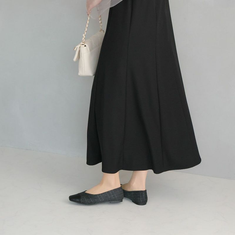 ・キラキラのグリッター×上品なラメ糸入りツイードがアクセサリー感覚で履ける!異素材の切り替えデザインがポイントのフラットパンプス!