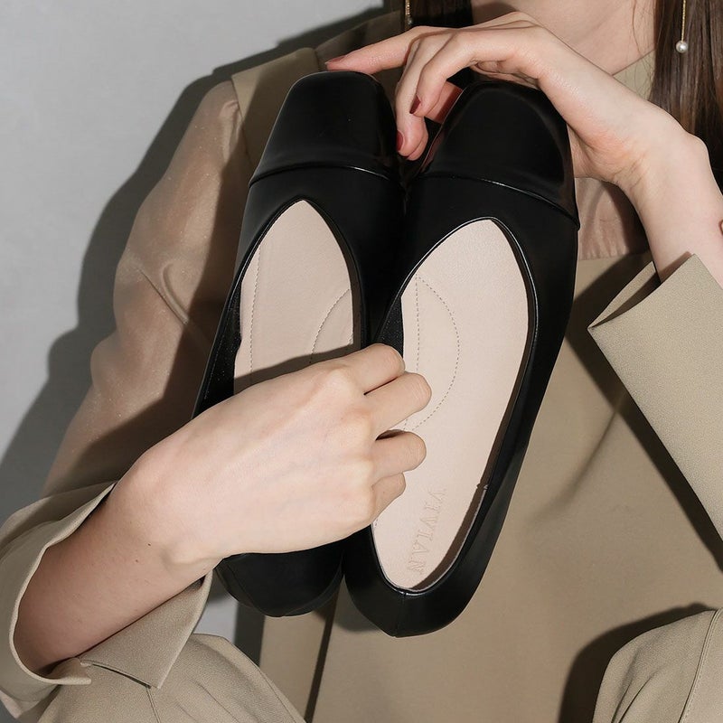 ・スクエアトゥ×Vカットで履くだけで大人のこなれ感を演出。