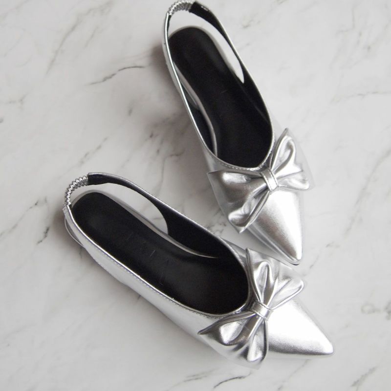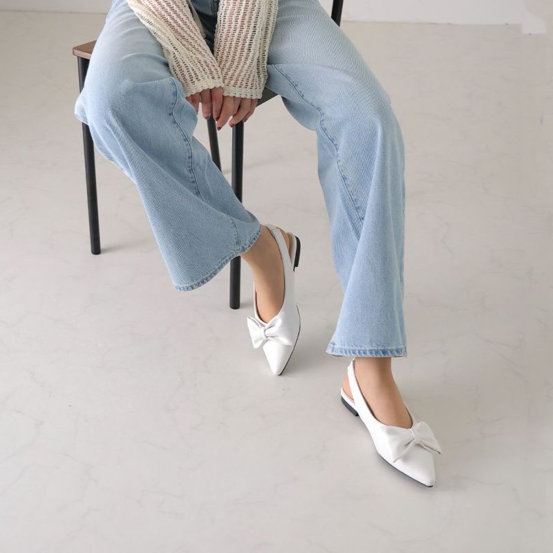・目を引くリボンで足元に華やかさをプラスするスリングバックパンプス!