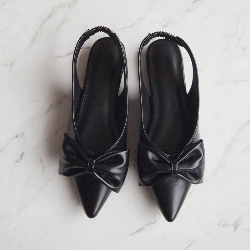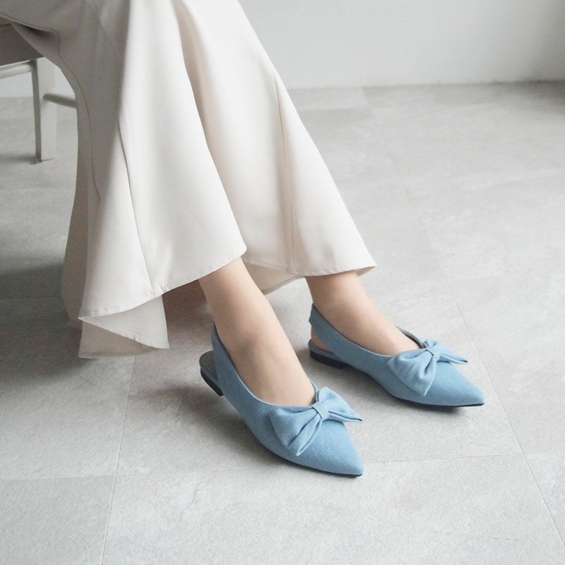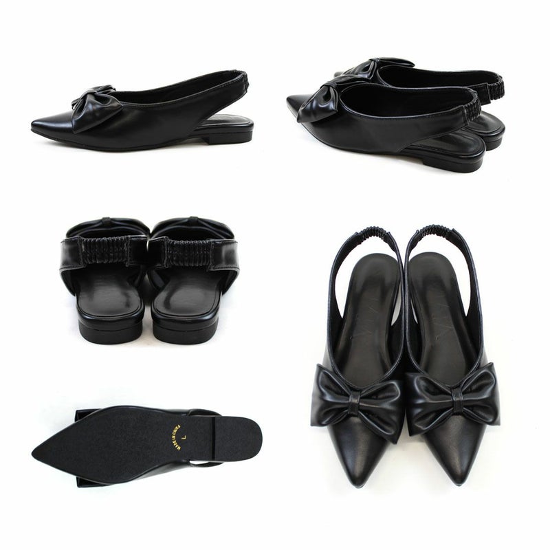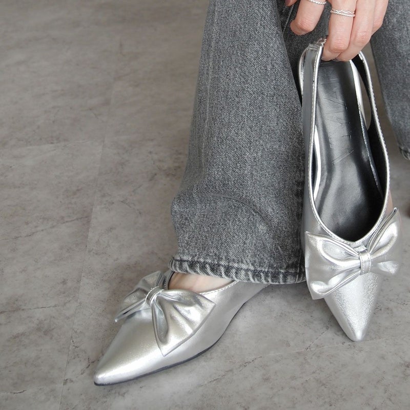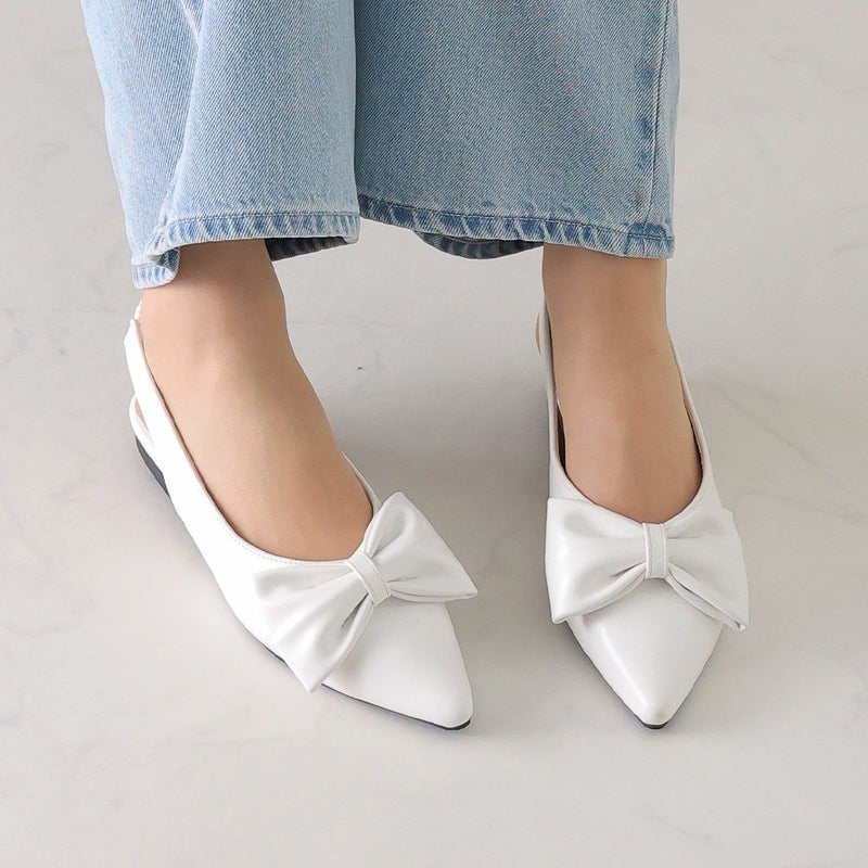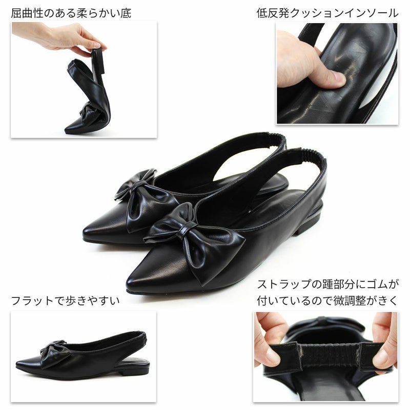 ・目を引くリボンで足元に華やかさをプラスするスリングバックパンプス!
