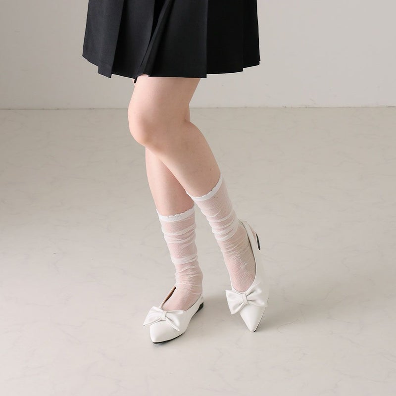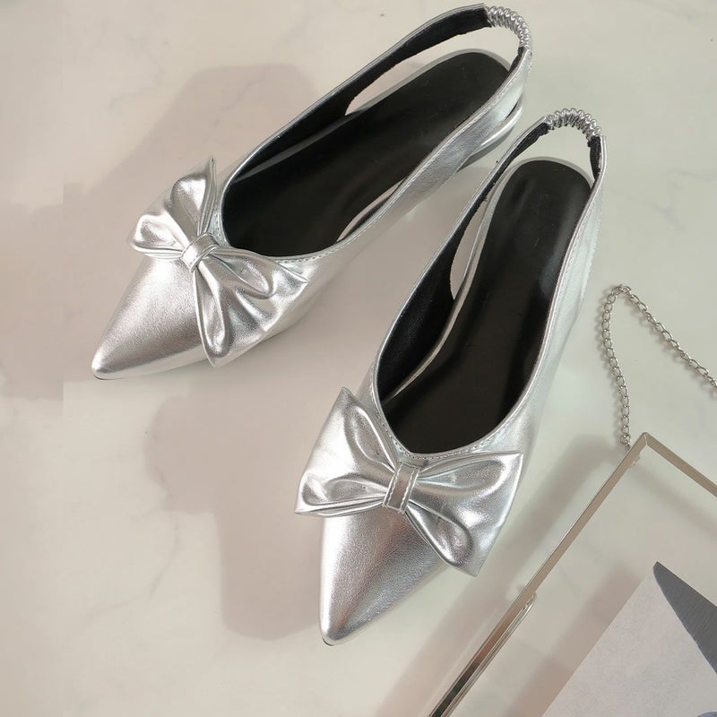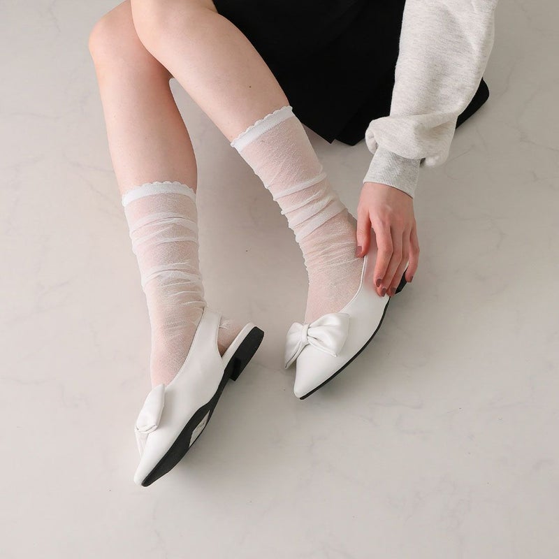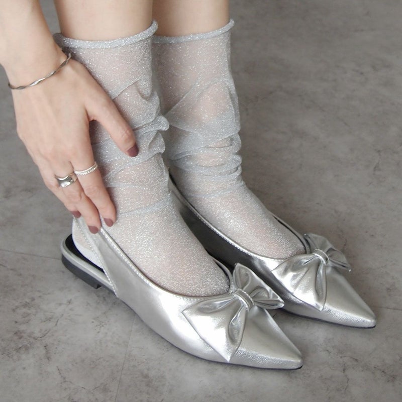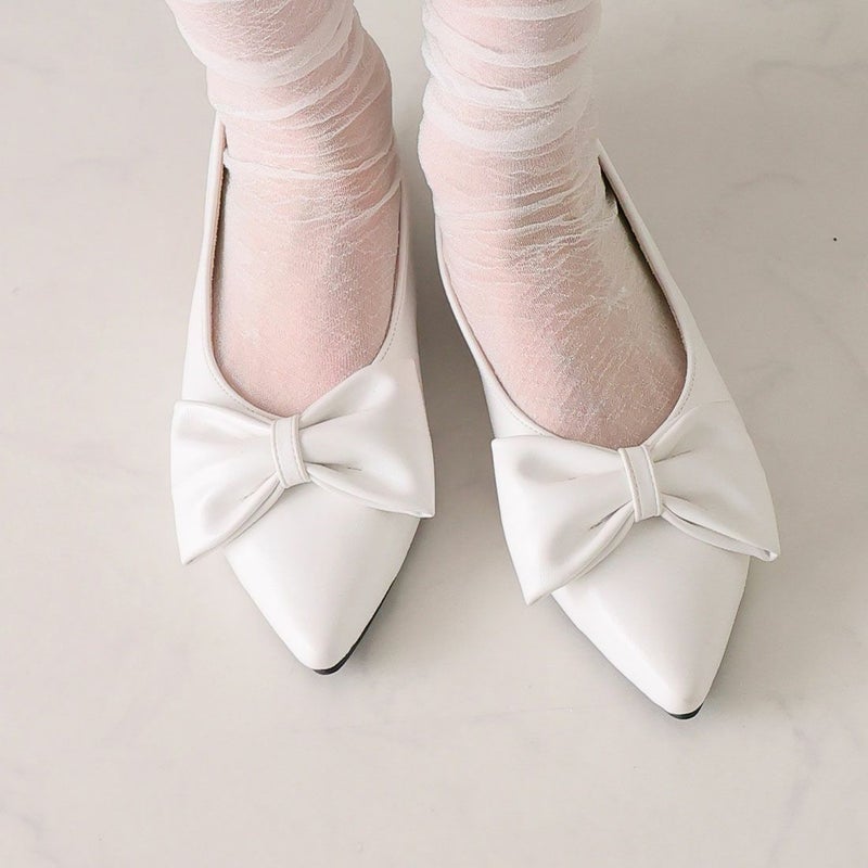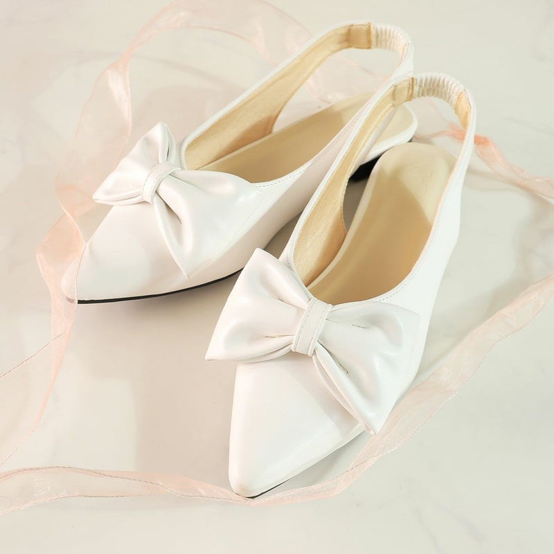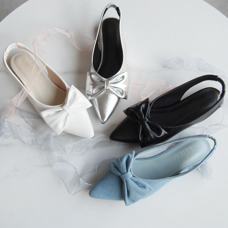 ・目を引くリボンで足元に華やかさをプラスするスリングバックパンプス!