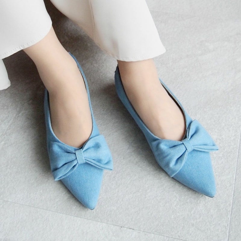 ・人気のリボンバックストラップパンプスにデニムが仲間入り!