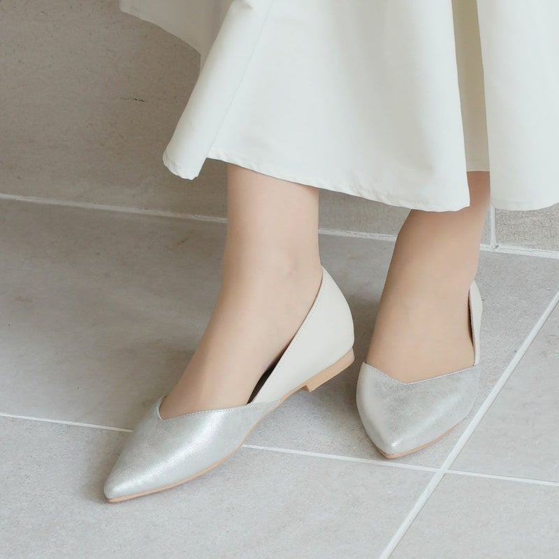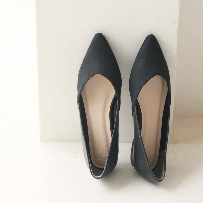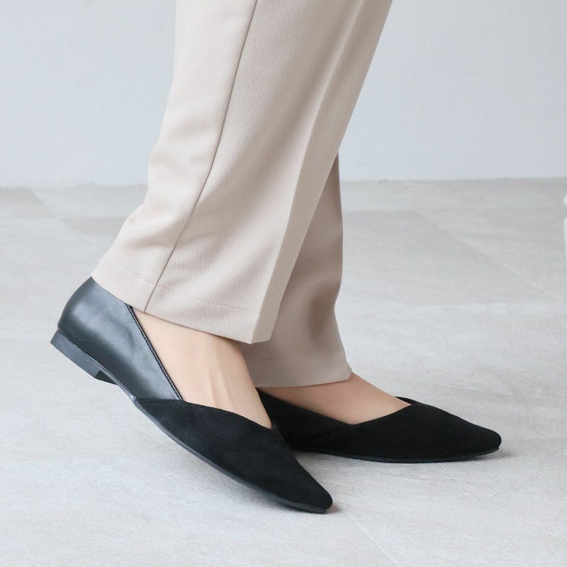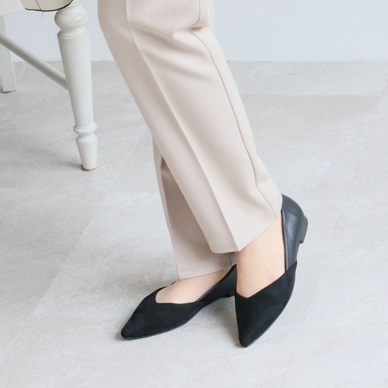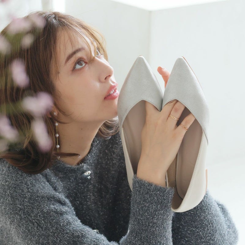 ・ポインテッドトゥ×Vカットで甘くなりすぎないこだわりフォルム。