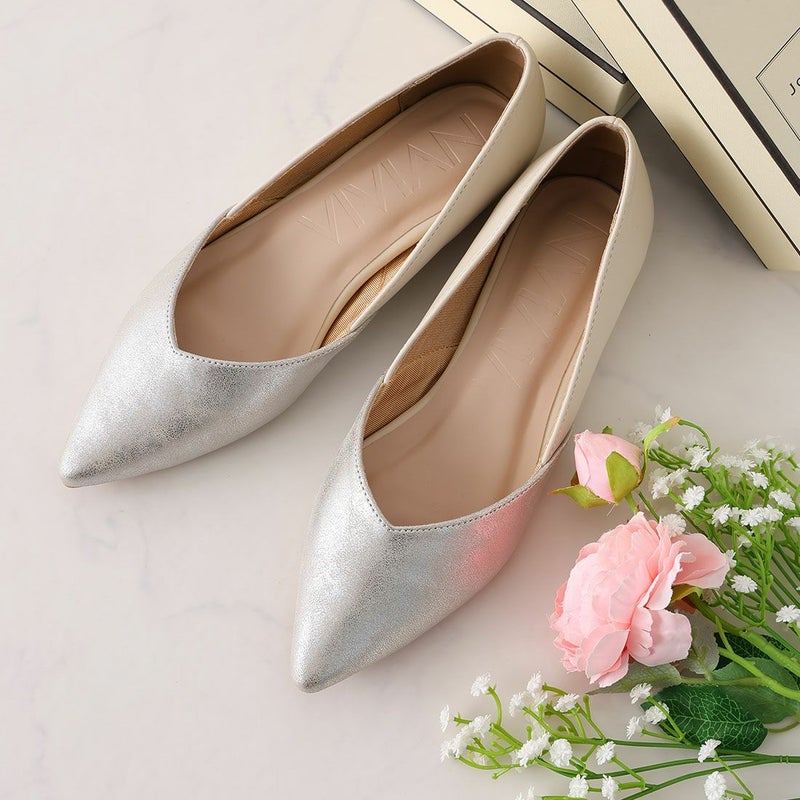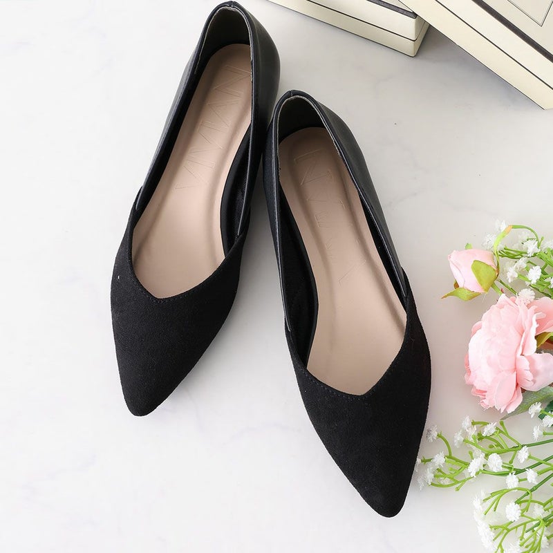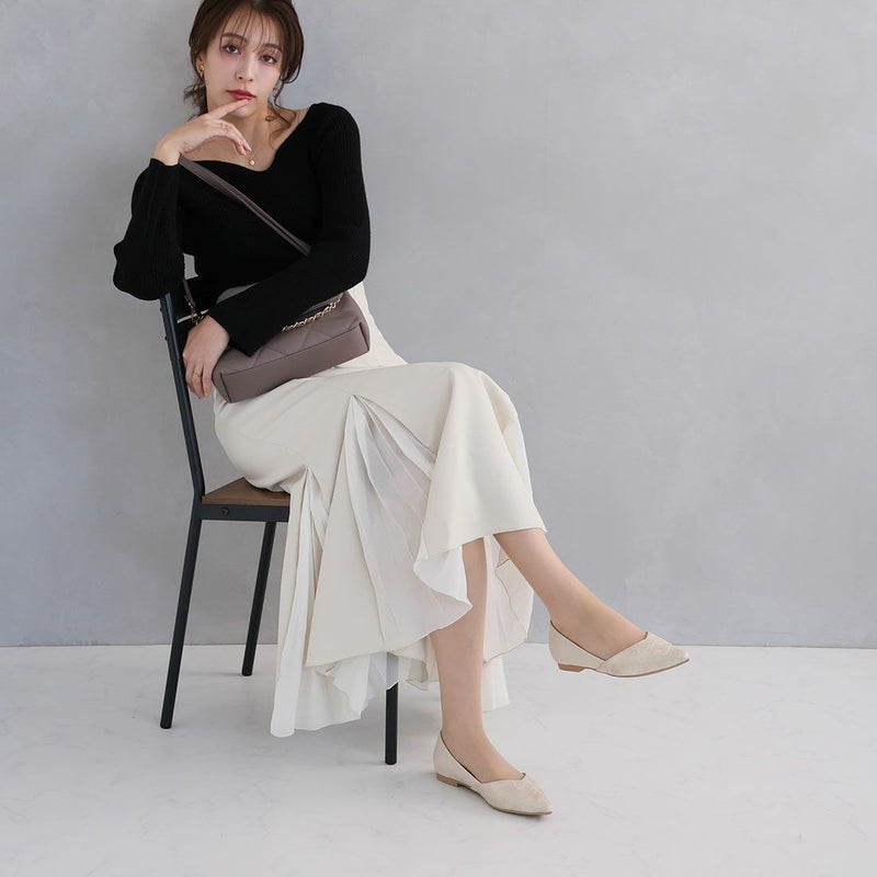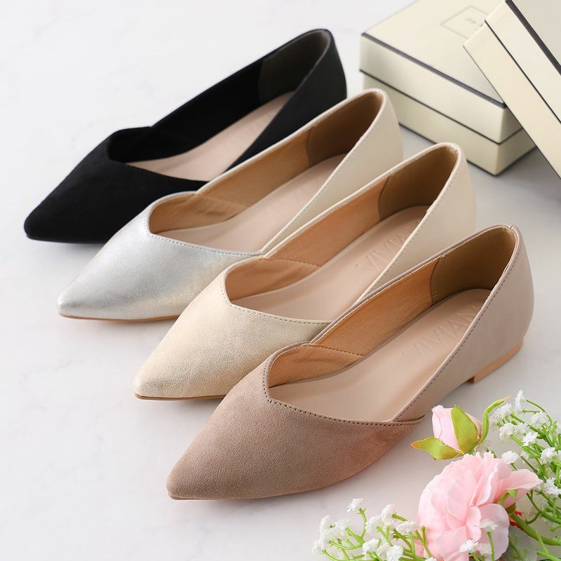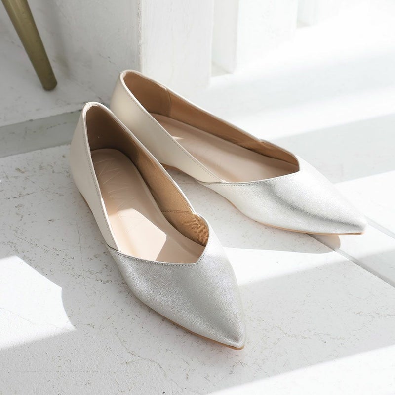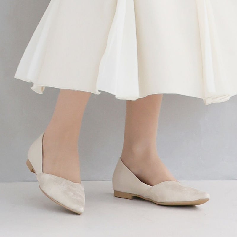 ・ポインテッドトゥ×Vカットで甘くなりすぎないこだわりフォルム。