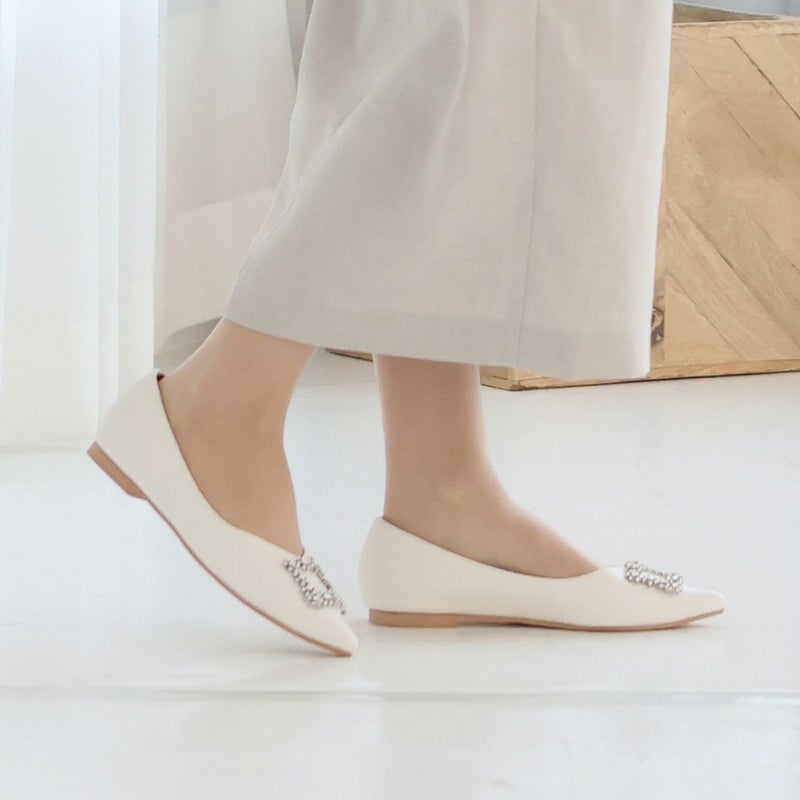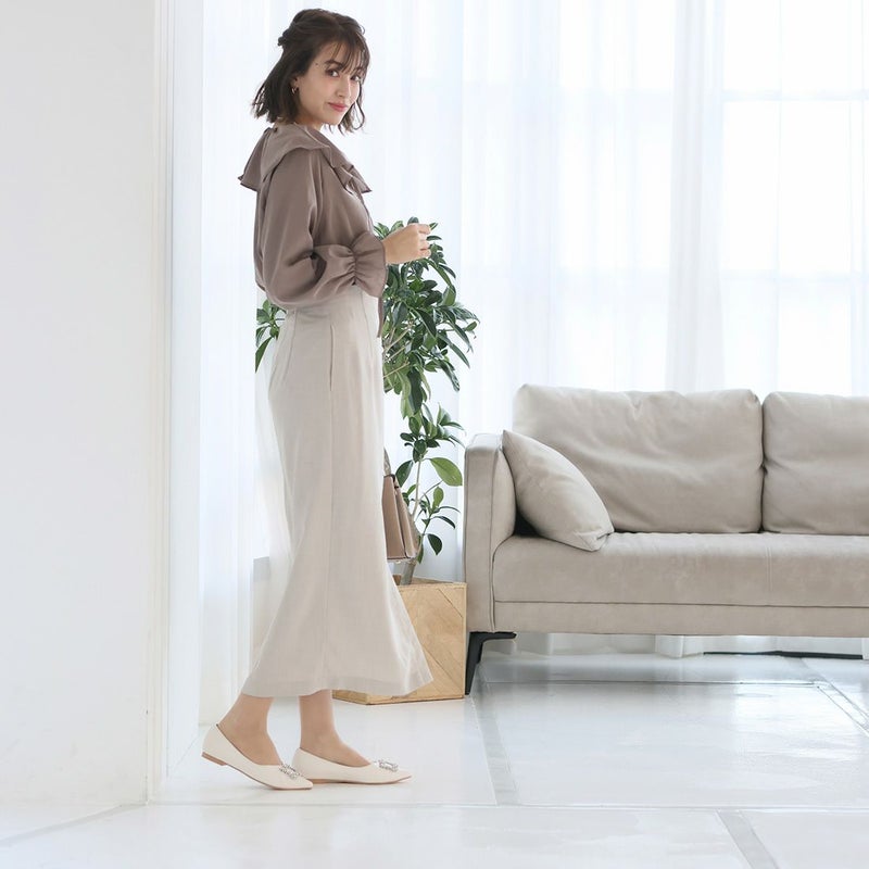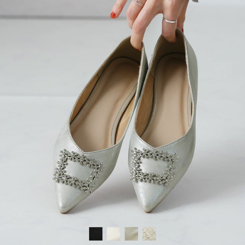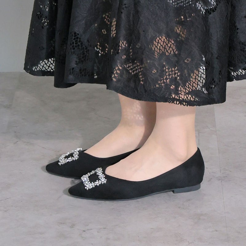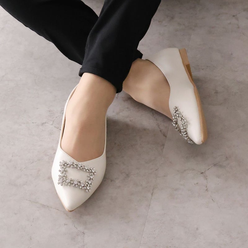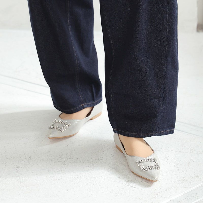 ・フラットでもポインテッドトゥ×Vカットで甘くなりすぎず上品なシルエット