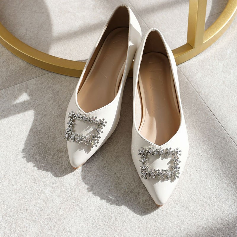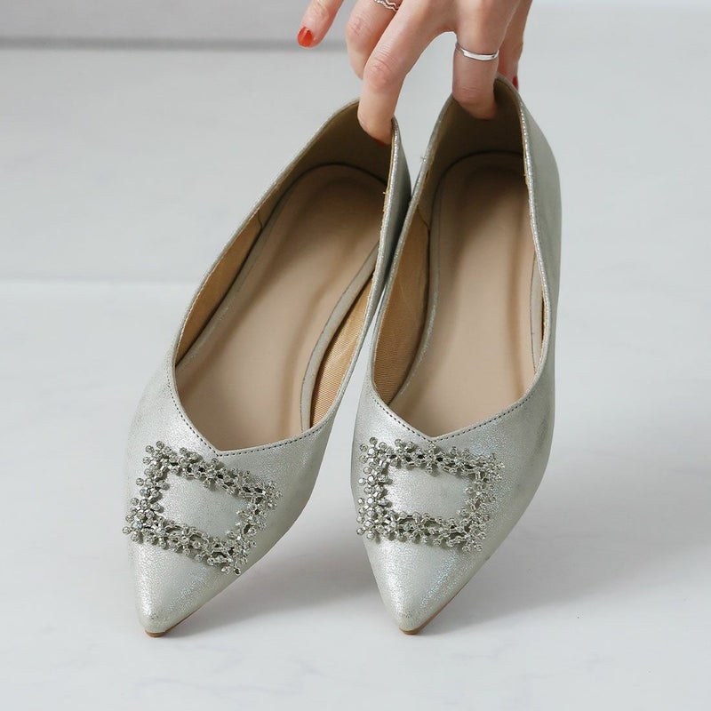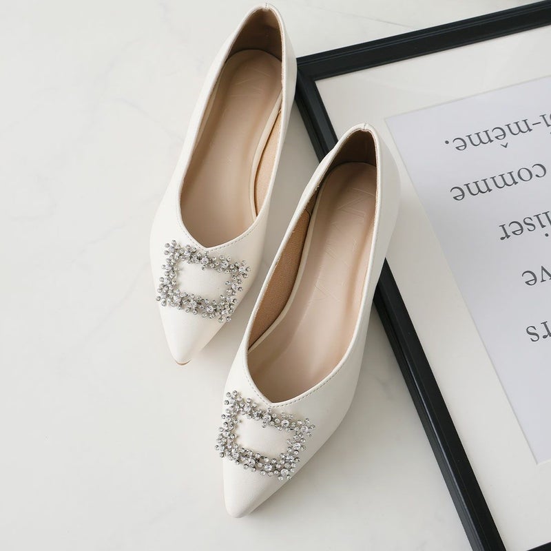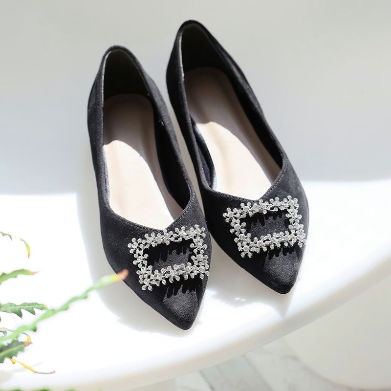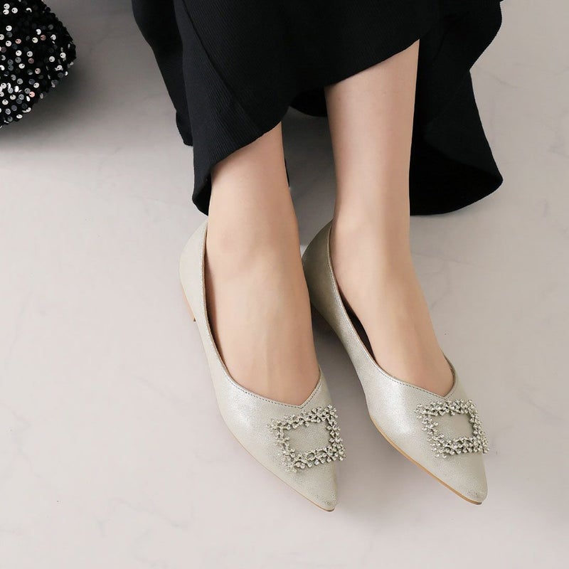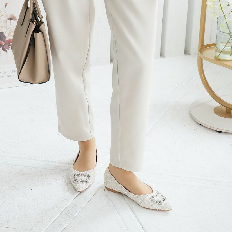 ・フラットでもポインテッドトゥ×Vカットで甘くなりすぎず上品なシルエット