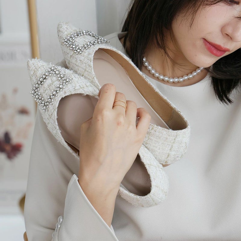 ・人気のビジューバックルパンプスにプラチナとツイードが仲間入り!