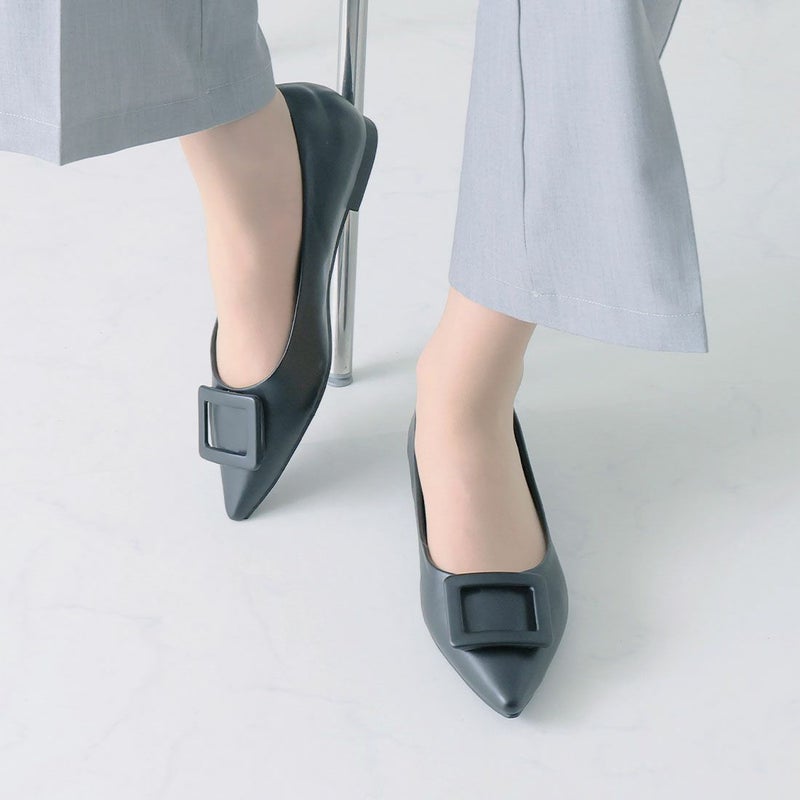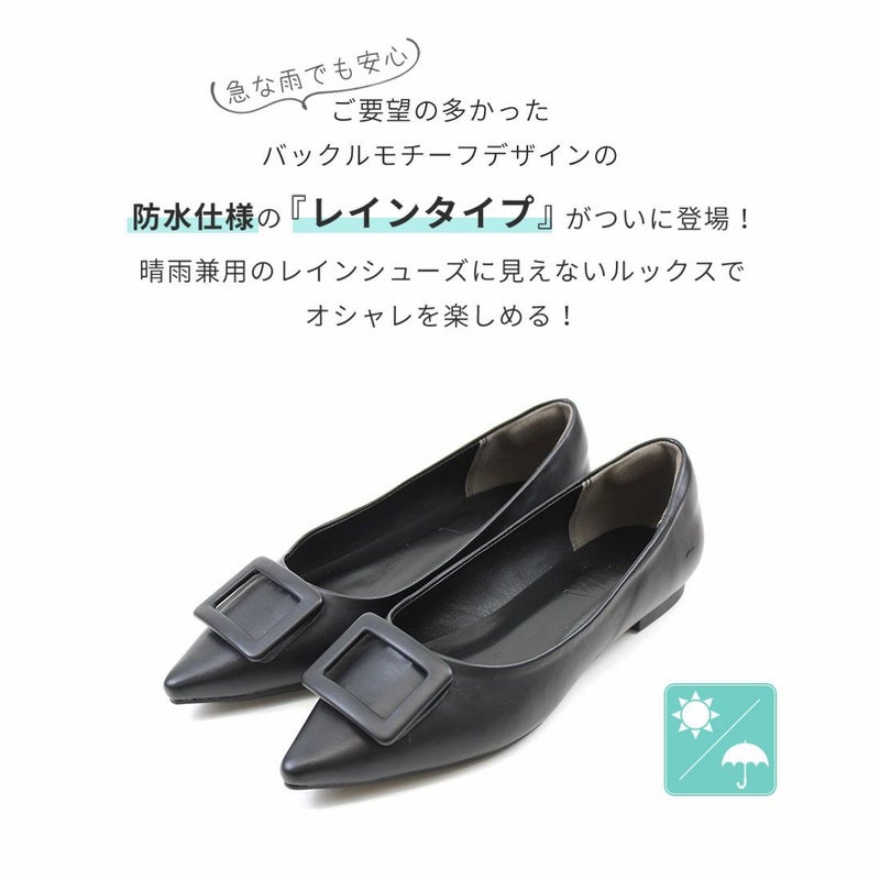 ・レインシューズに見えない!マットな質感が新鮮な晴雨兼用のレインバックルモチーフパンプス!