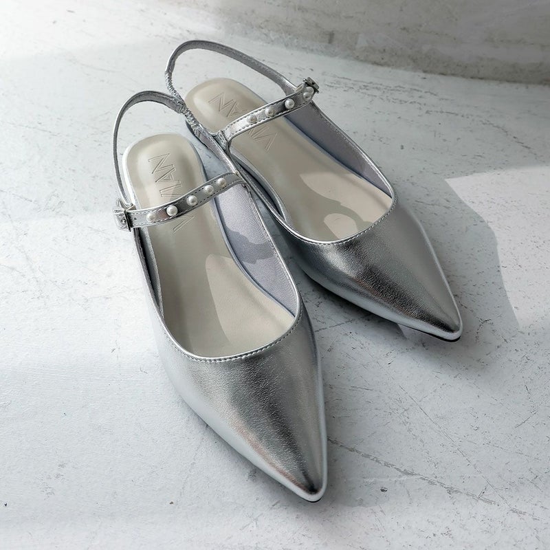 VIVIAN ポインテッドトゥパールストラップスリングバックパンプス