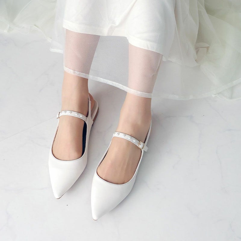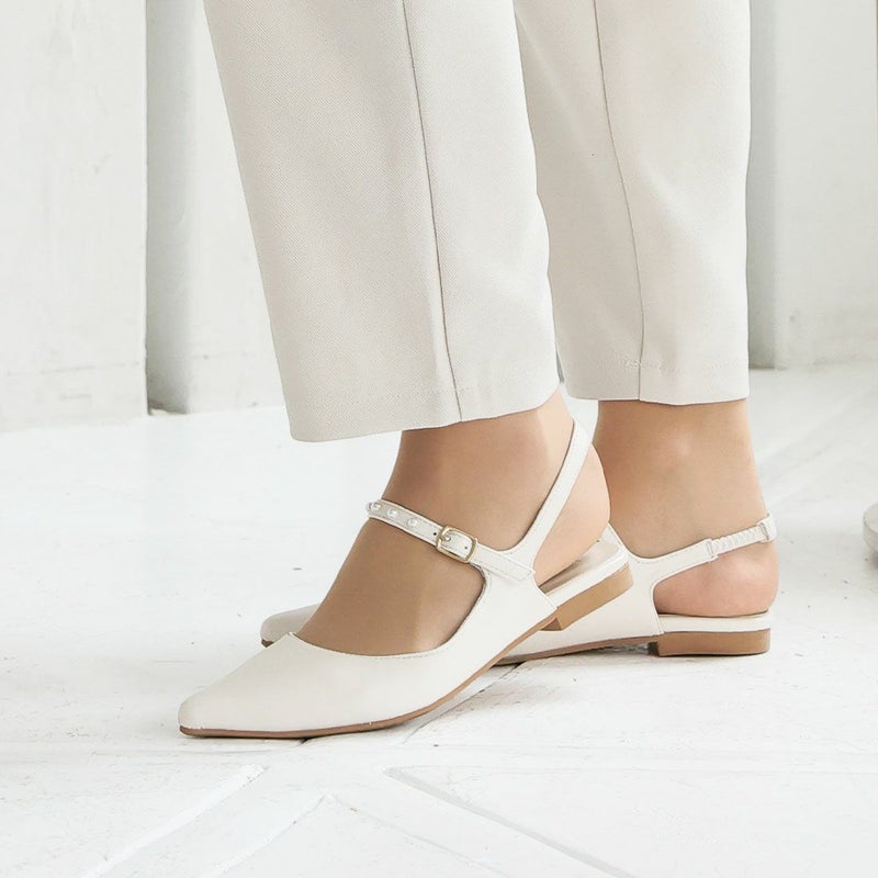 ・パールのストラップが目を引く主役級スリングバックパンプス!