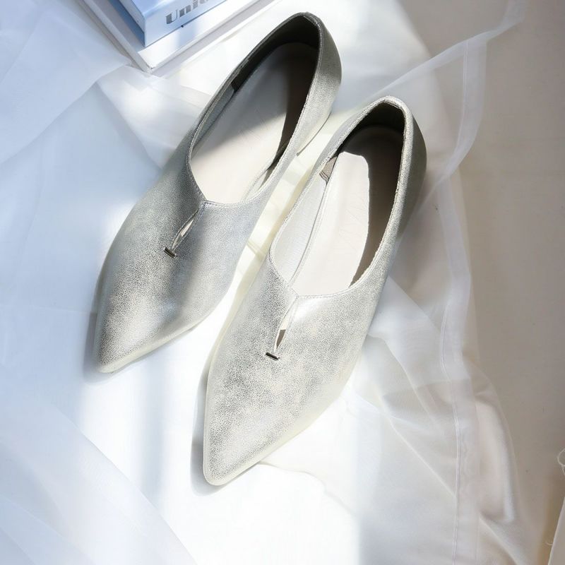 ・ポインテッドトゥ×ローヒールで甘くなりすぎない上品フォルム。