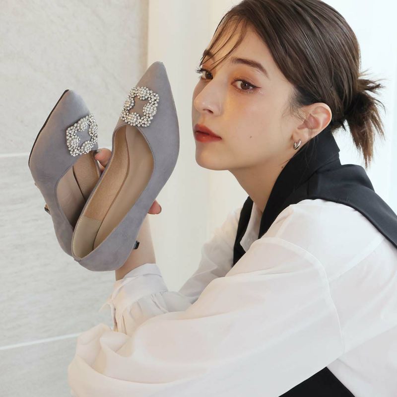 ・キラキラビジューバックルが輝く主役級アイテムのモチーフパンプス!