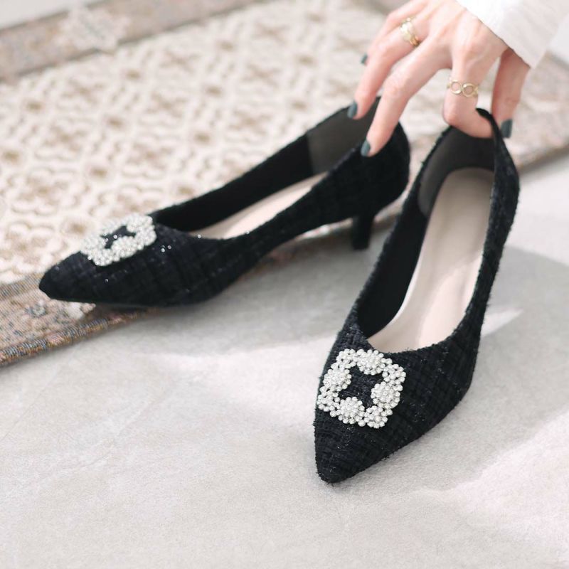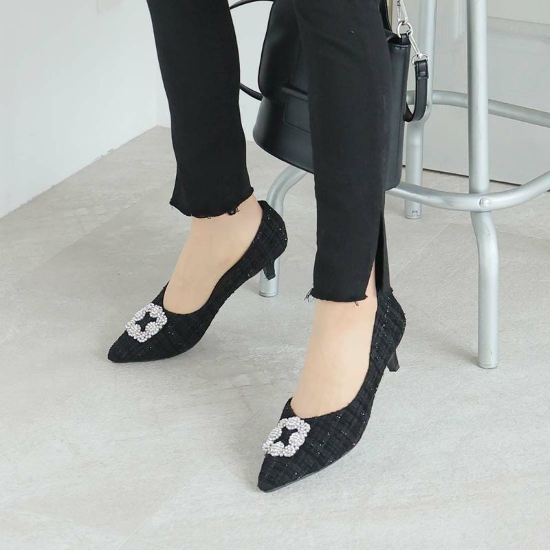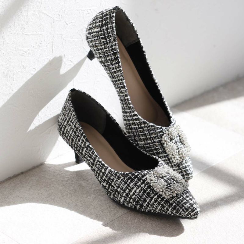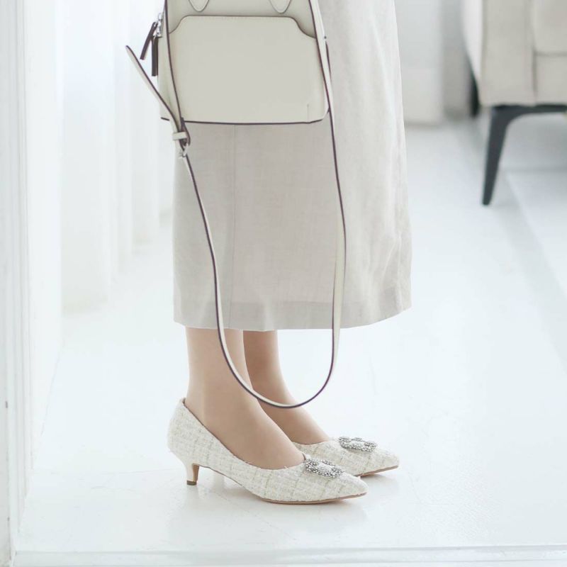 ・人気のビジューパンプスに今季らしいツイードのベージュが仲間入り!