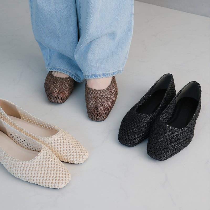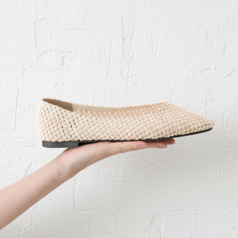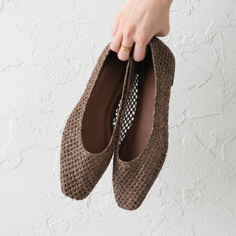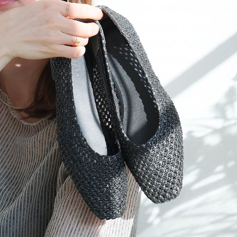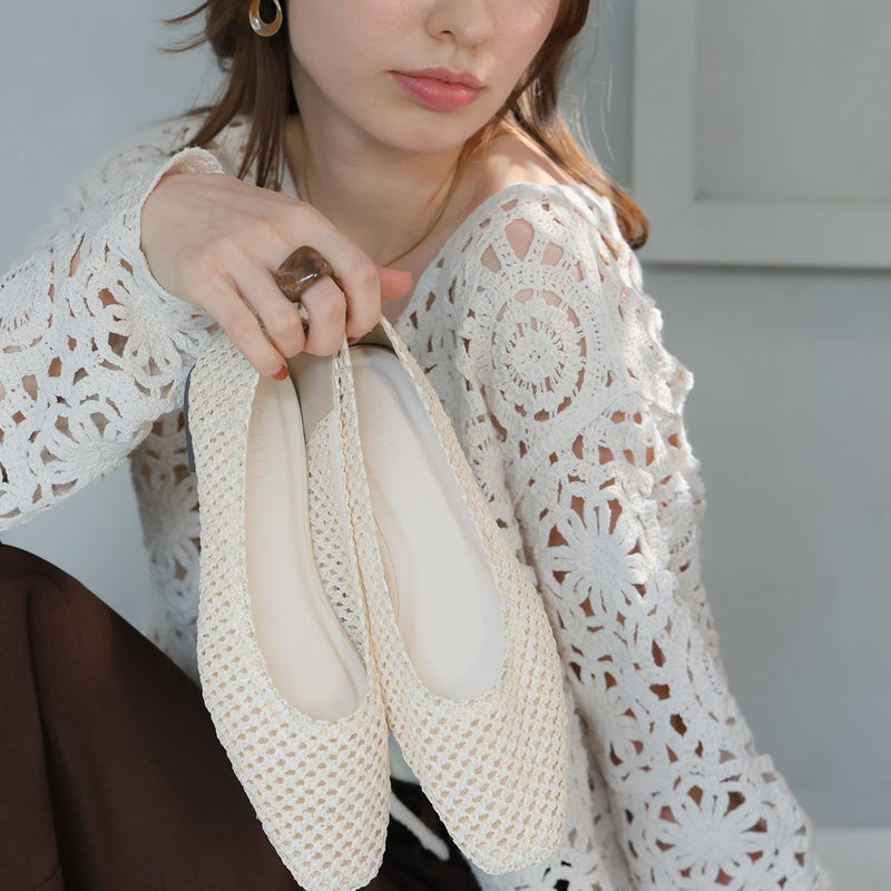 ・今期大注目の涼やかなラフィアメッシュ編みのシアーフラットシューズ