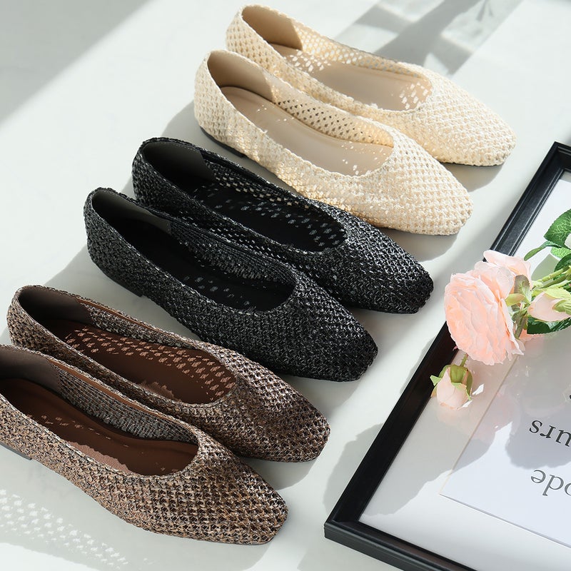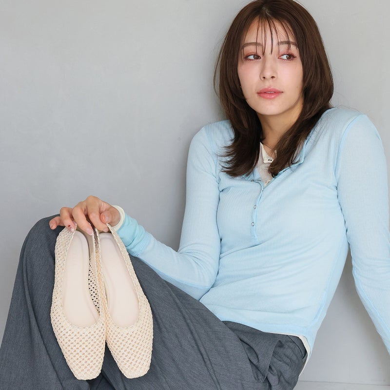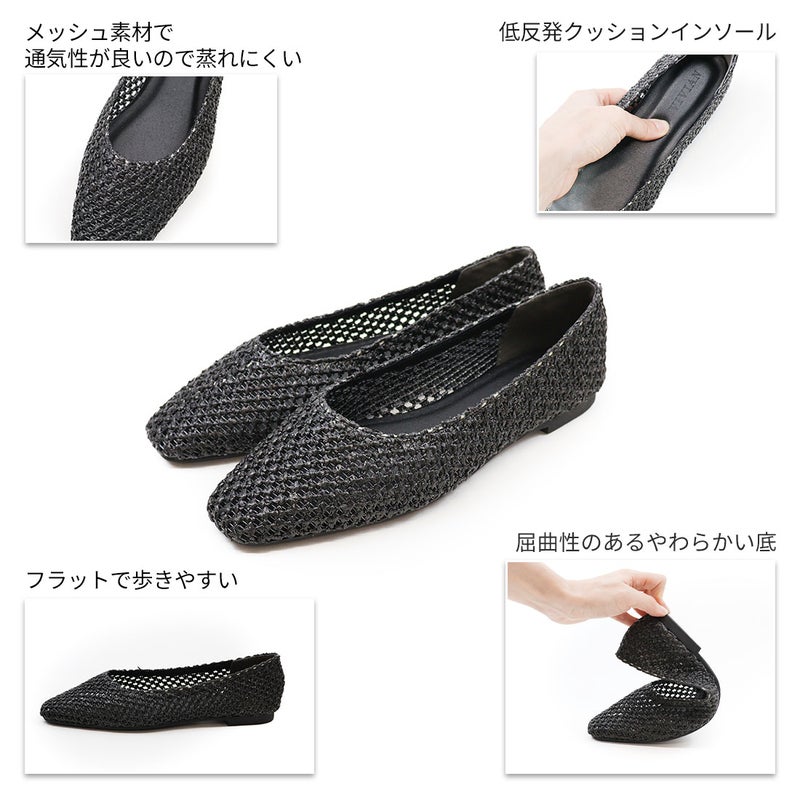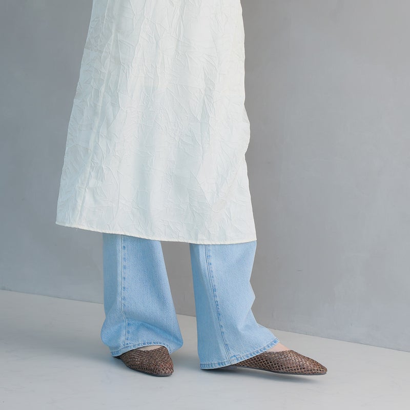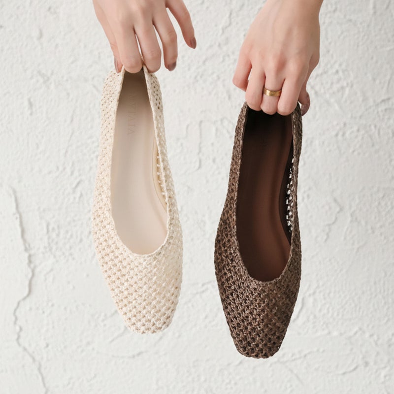 ・今期大注目の涼やかなラフィアメッシュ編みのシアーフラットシューズ
