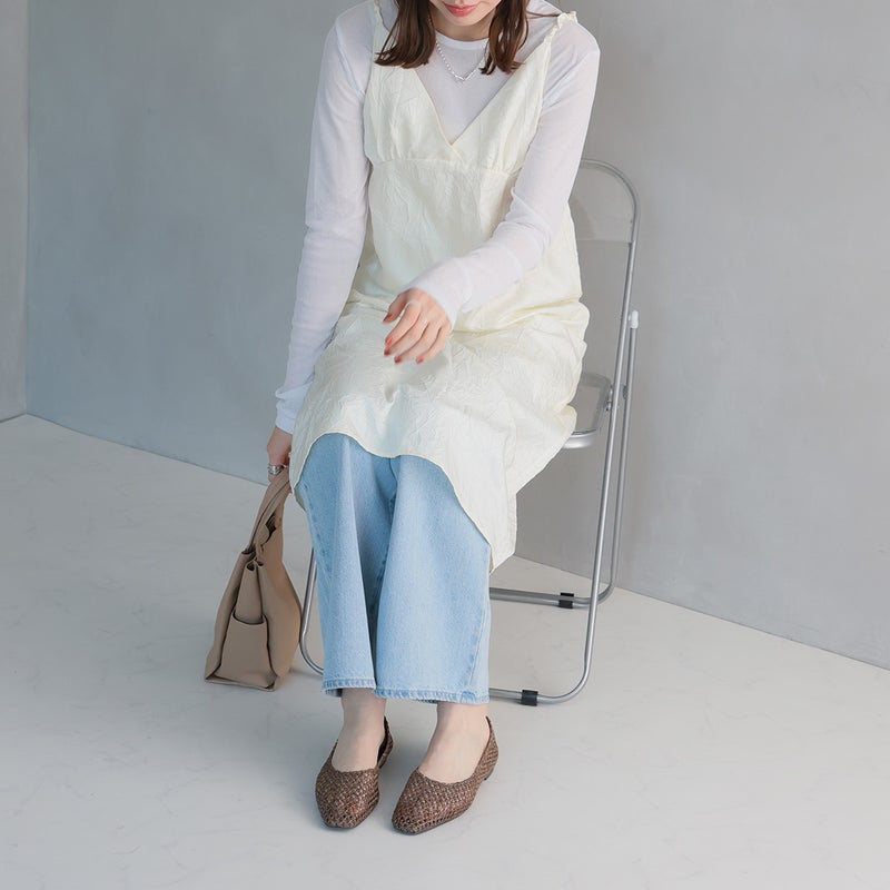 ・どんなスタイリングとも相性が良く、パンツスタイルやワンピース、スカートなどのデイリーコーデにもマッチ。シンプルなアイテム合わせでも、メッシュ編みがさりげないアクセントに。
