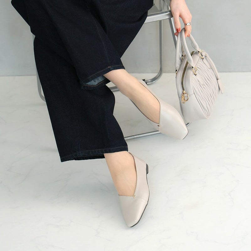 ・スクエアトゥとこだわりのカットラインで履くだけで大人なこなれ感を演出。