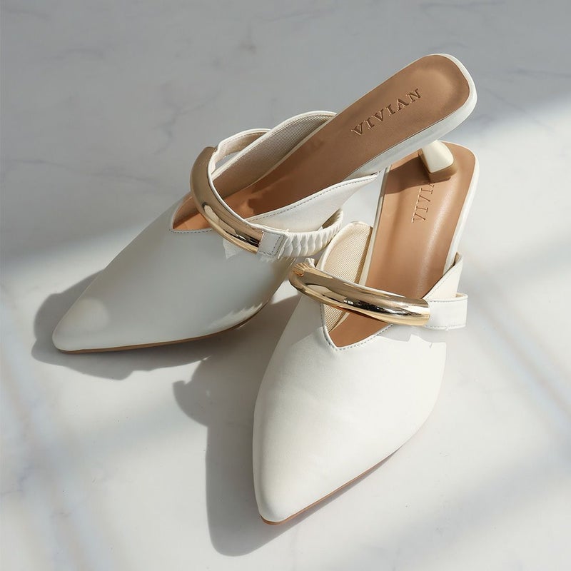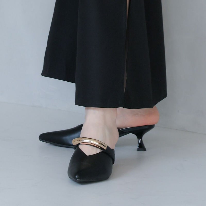 ・ぷっくりとした立体的なゴールドモチーフが足元に映えるミュールパンプス!