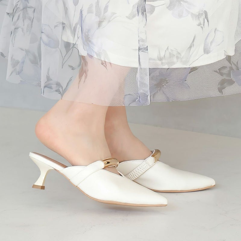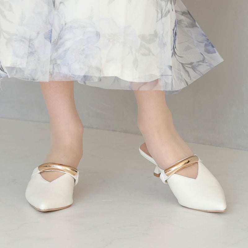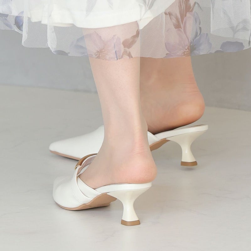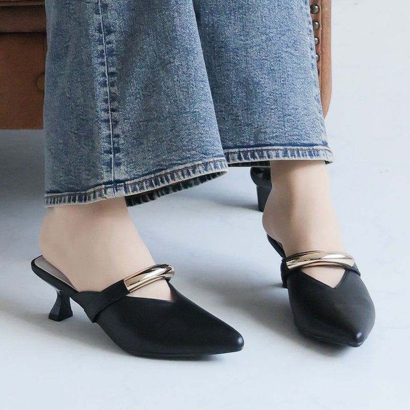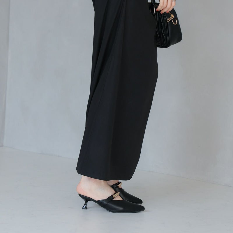 ・抜け感たっぷりのミュールデザインは、春から秋口までロングシーズン履けてオンオフ大活躍間違いなしの一足。