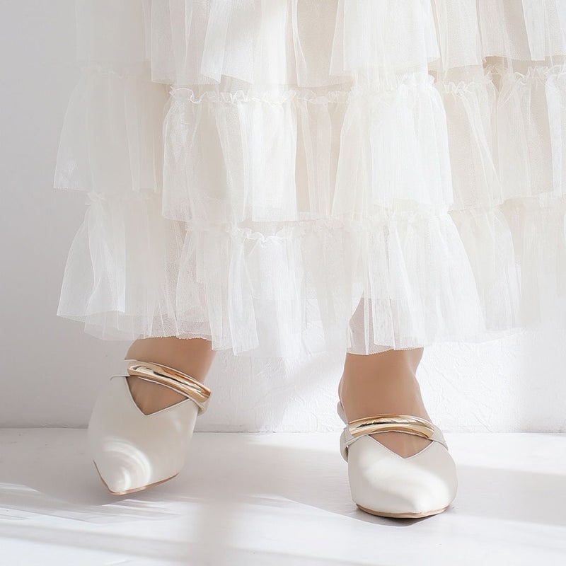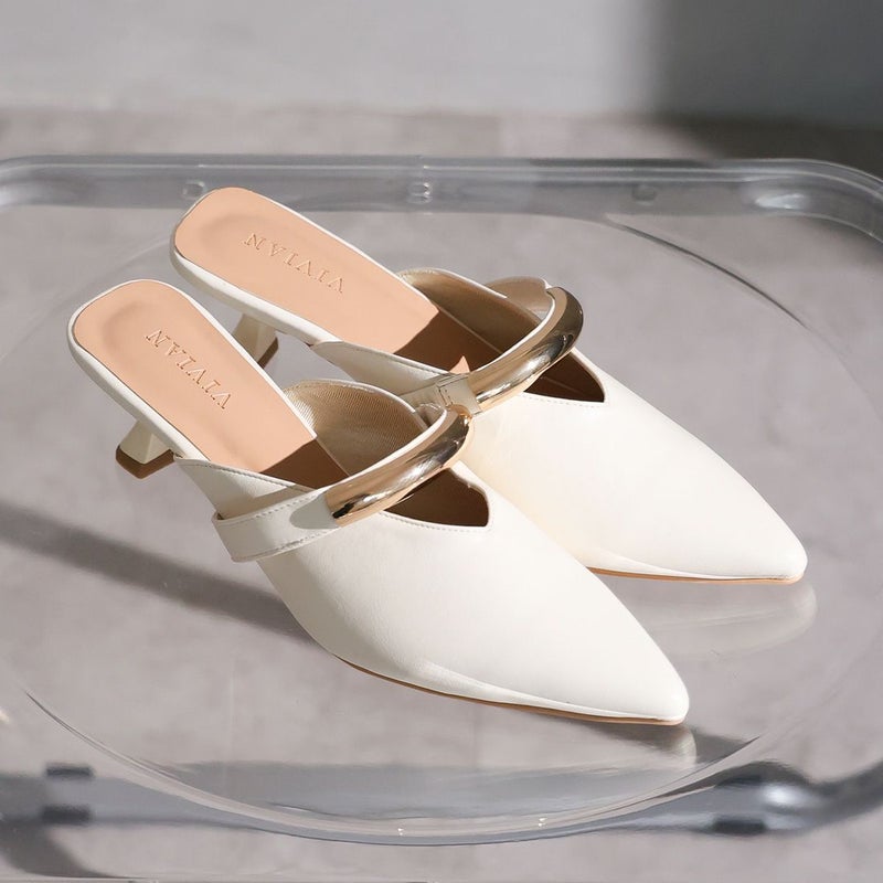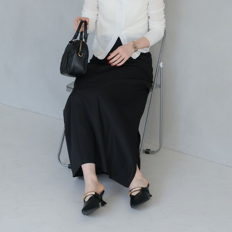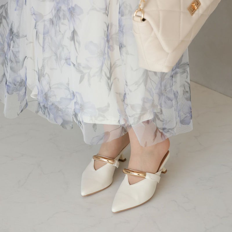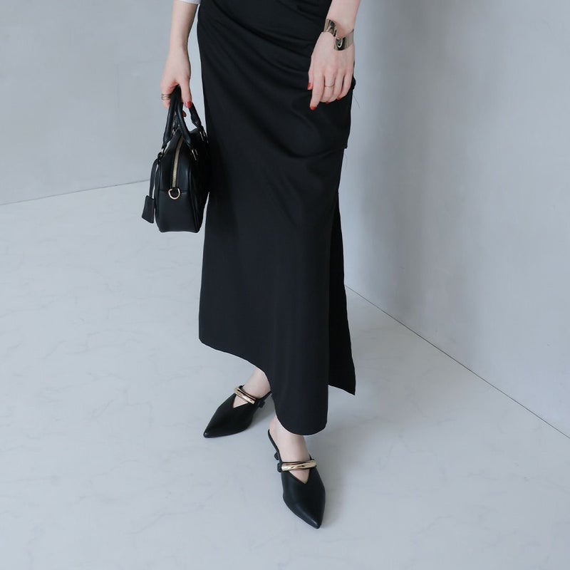 ・抜け感たっぷりのミュールデザインは、春から秋口までロングシーズン履けてオンオフ大活躍間違いなしの一足。