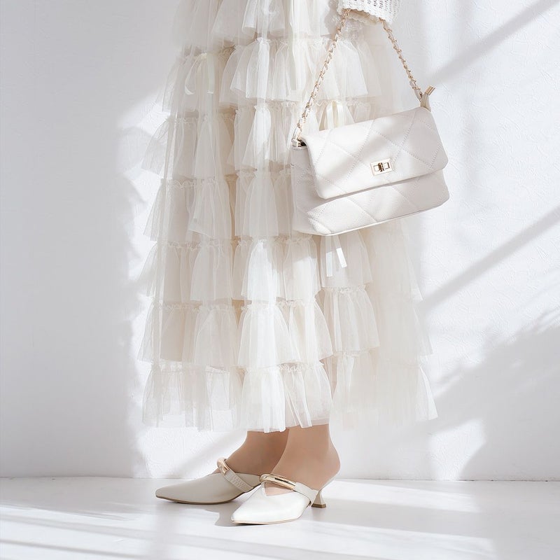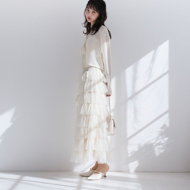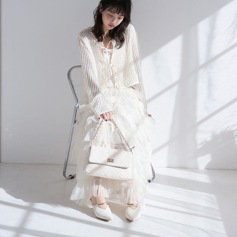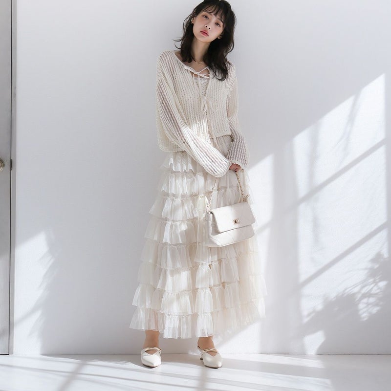 ・スカートやワンピースなどガーリーアイテムとの相性が良く、デニムやカジュアルコーデなど幅広いテイストに合わせやすい